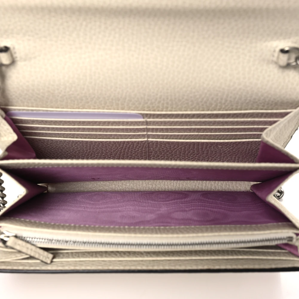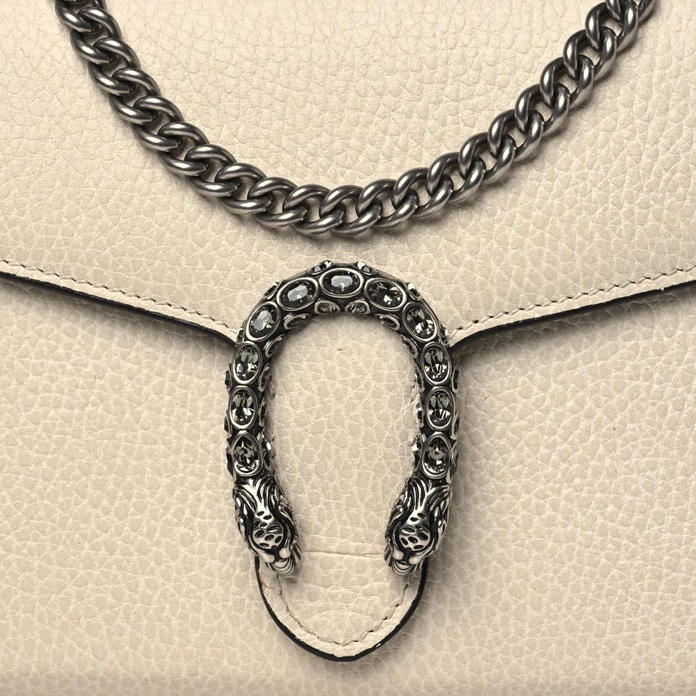 GUCCI MINI DIONYSUS CHAIN WALLET MYSTIC WHITE DOLLAR CALFSKIN LEATHER AGED SILVER HARDWARE