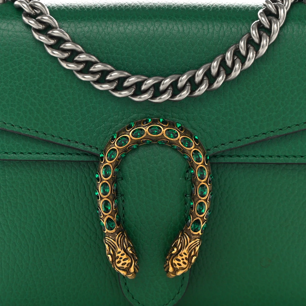 GUCCI MINI DIONYSUS SHOULDER BAG EMERALD CALFSKIN LEATHER AGED SILVER HARDWARE