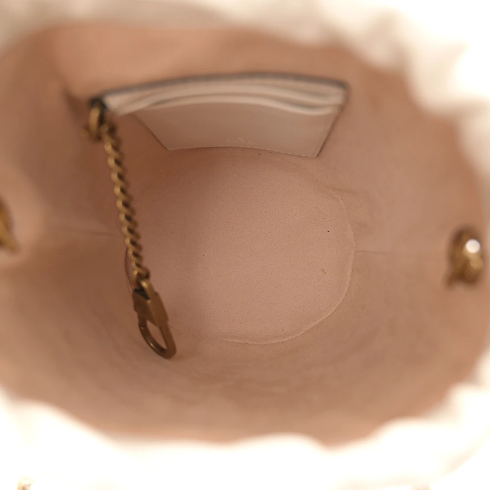 GUCCI MINI GG MARMONT 2.0 BUCKET BAG WHITE CALFSKIN MATELASS?? LEATHER AGED GOLD HARDWARE