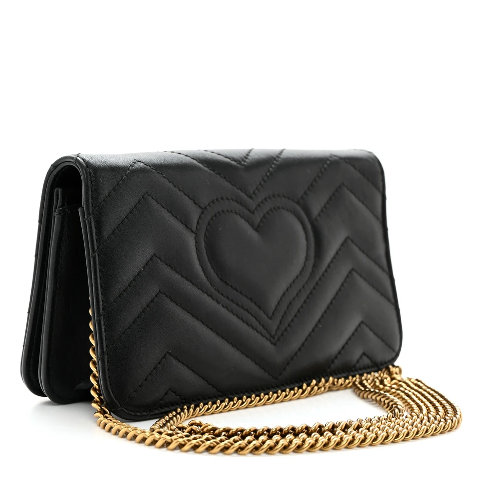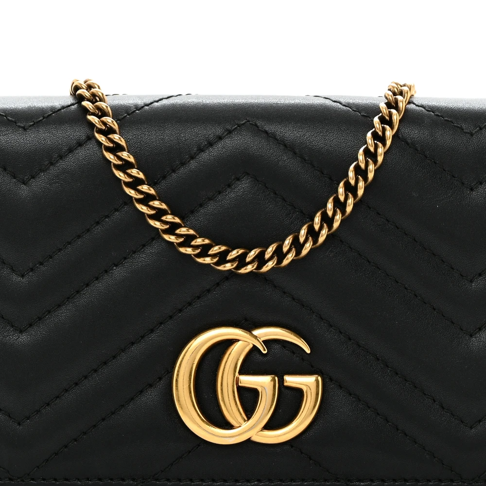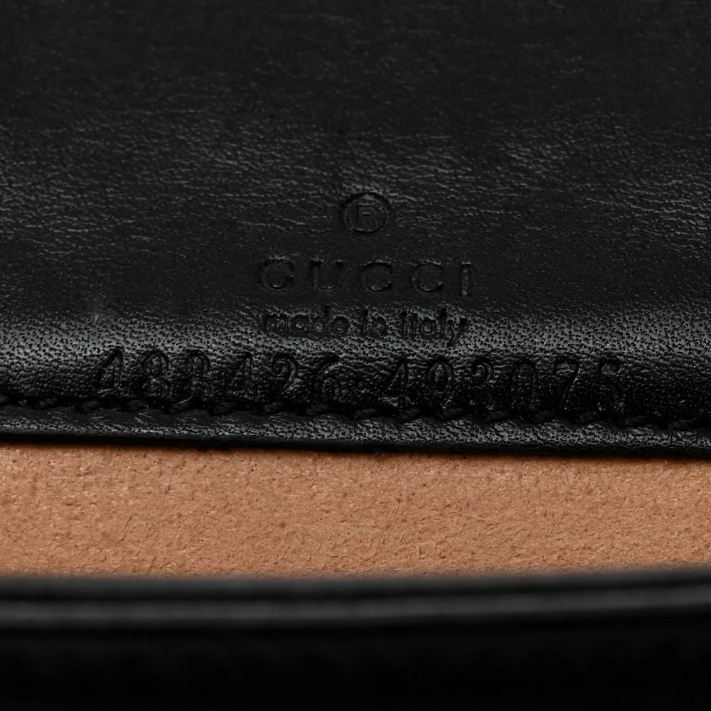 GUCCI MINI GG MARMONT BAG BLACK CALFSKIN MATELASS?? LEATHER AGED GOLD HARDWARE
