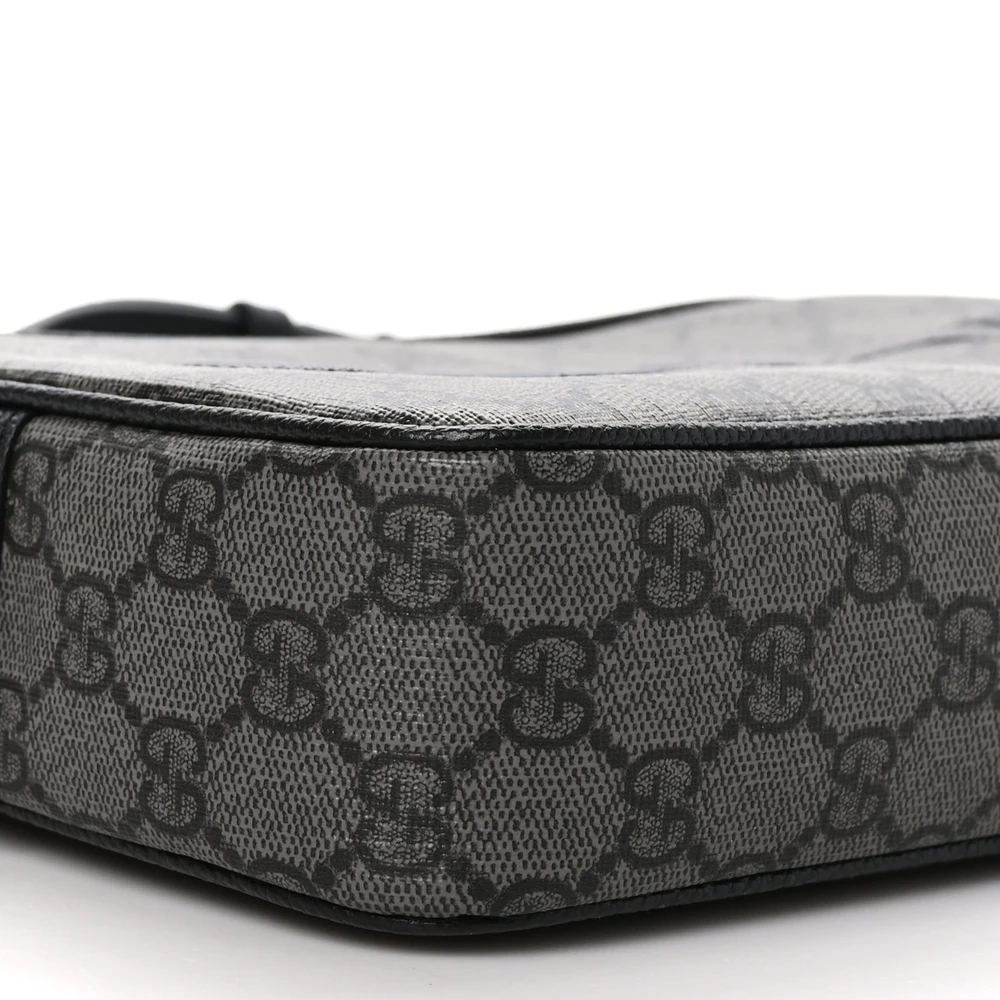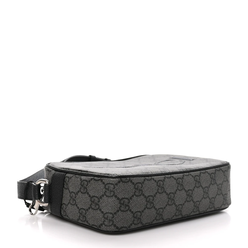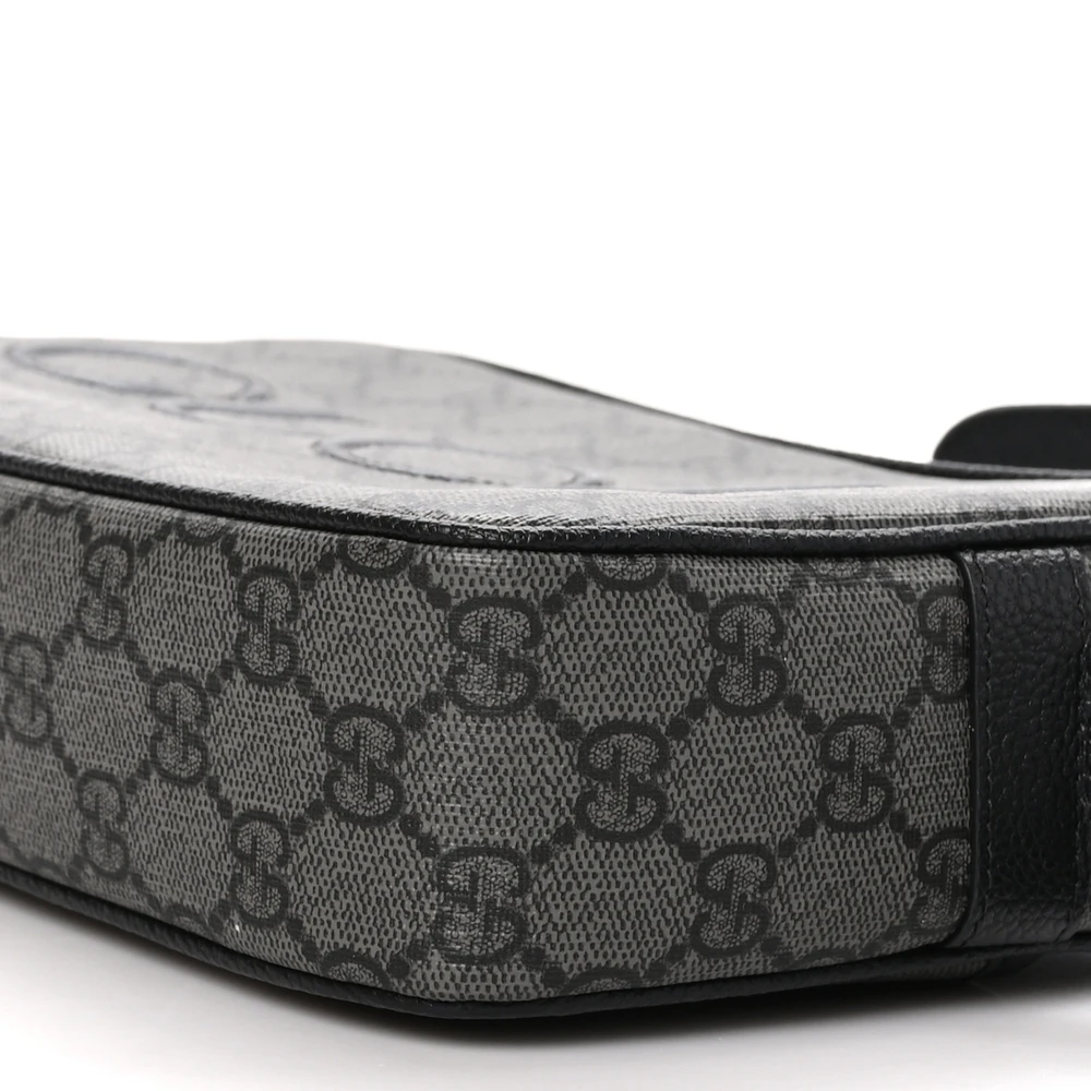 GUCCI MINI SHOULDER BAG GREY/BLACK GG SUPREME MONOGRAM CANVAS AGED SILVER HARDWARE