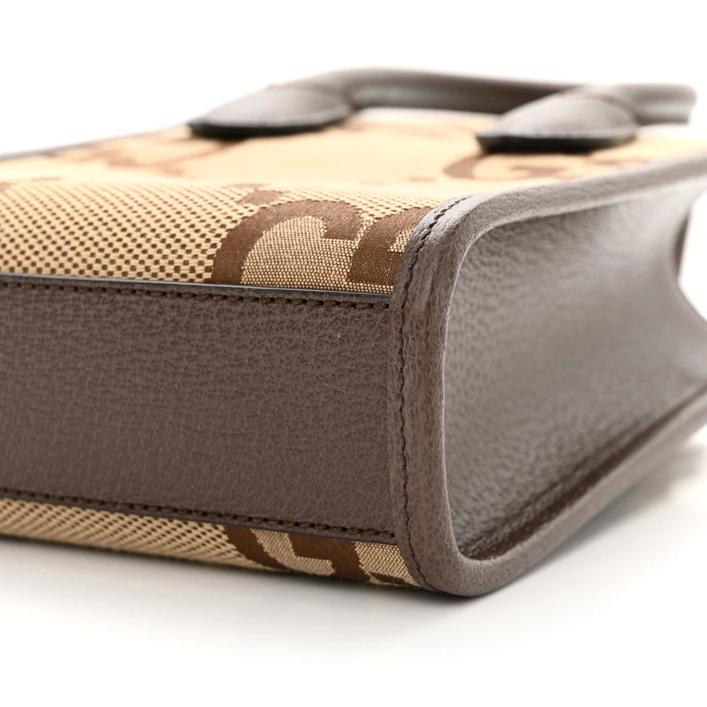 GUCCI MINI VERTICAL TOTE CAMEL EBONY TEXTURED DOLLAR CALFSKIN LEATHER GOLD HARDWARE
