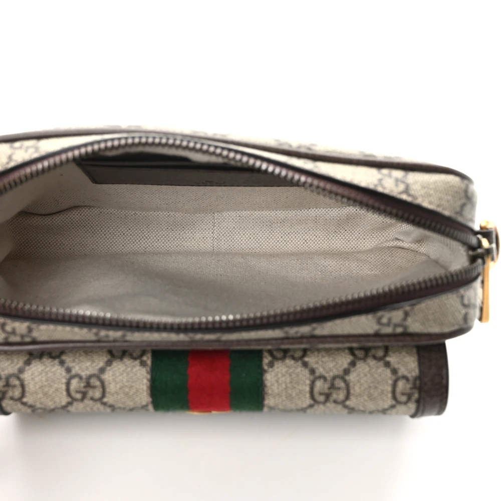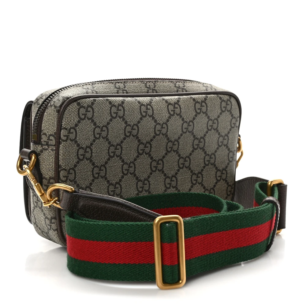 GUCCI MINI WEB OPHIDIA BAG BEIGE/EBONY GG SUPREME MONOGRAM CANVAS GOLD HARDWARE