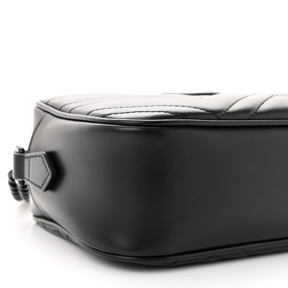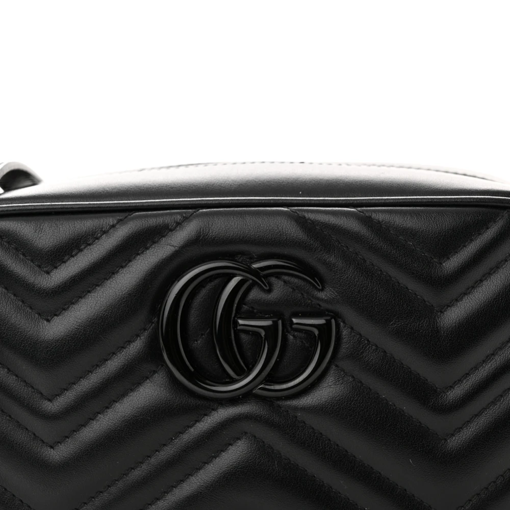 GUCCI SMALL GG MARMONT CHAIN SHOULDER BAG BLACK CALFSKIN LEATHER BLACK HARDWARE