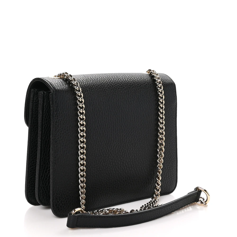 GUCCI SMALL INTERLOCKING G SHOULDER BAG BLACK DOLLAR CALFSKIN LEATHER GOLD HARDWARE