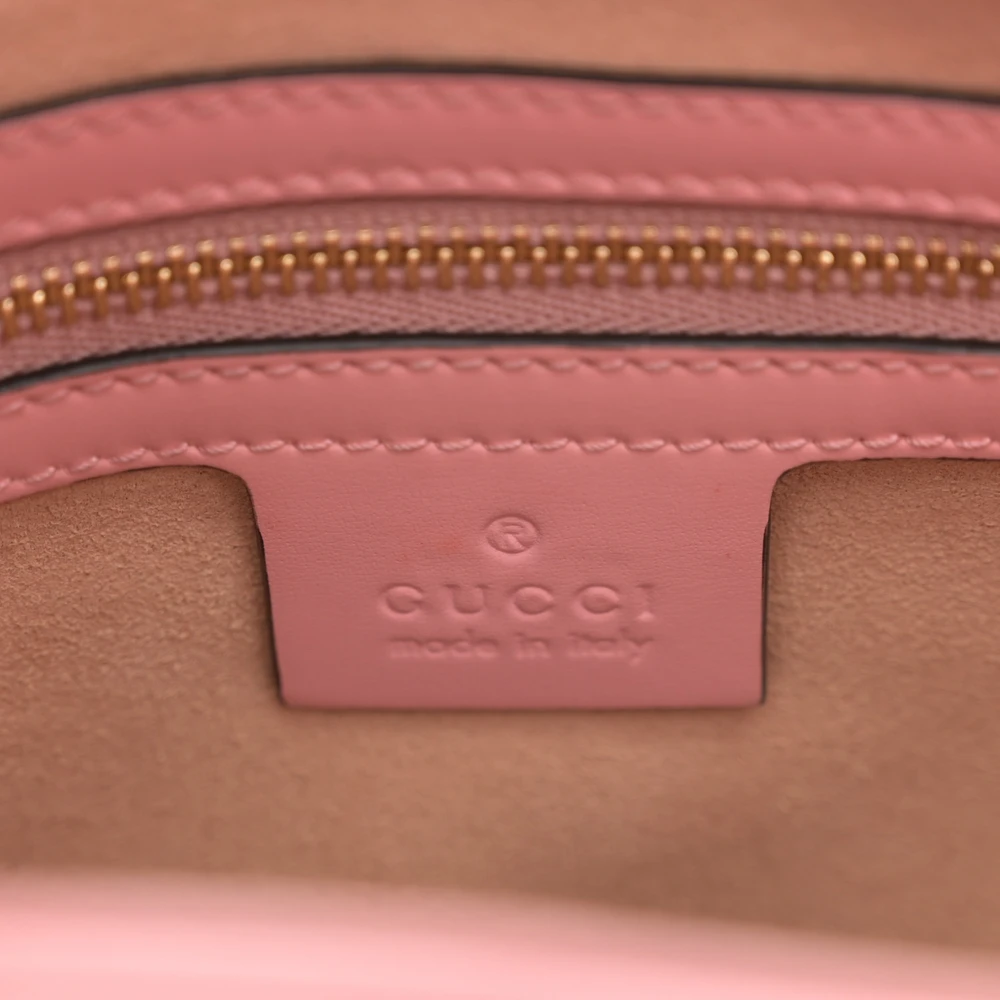 GUCCI SMALL GG MARMONT SHOULDER BAG PORCELAIN ROSE CALFSKIN MATELASS?? LEATHER GOLD HARDWARE