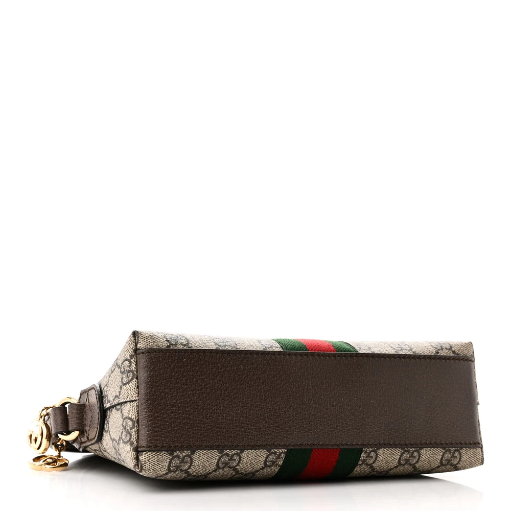 GUCCI SMALL OPHIDIA DOME SHOULDER BAG BEIGE / EBONY / NEW ACERO GG SUPREME MONOGRAM CANVAS & TEXTURED DOLLAR CALFSKIN LEATHER GOLD