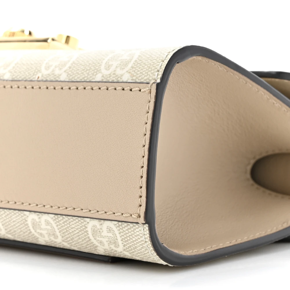 GUCCI SMALL PADLOCK CHAIN SHOULDER BAG BEIGE / MYSTIC WHITE / OATMEAL GG SUPREME MONOGRAM CANVAS & TEXTURED DOLLAR CALFSKIN LEATHER GOLD HARDWARE