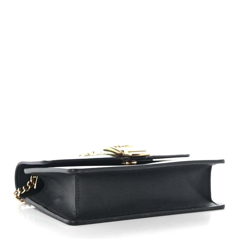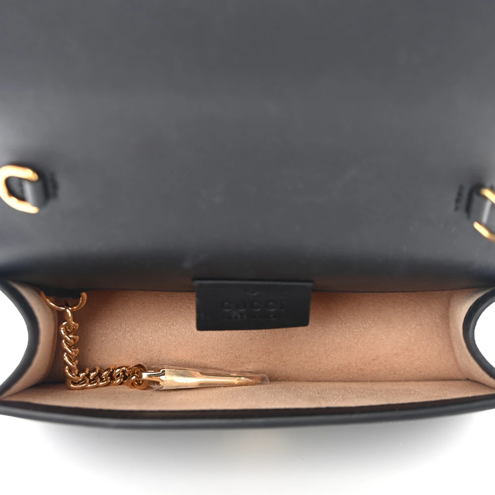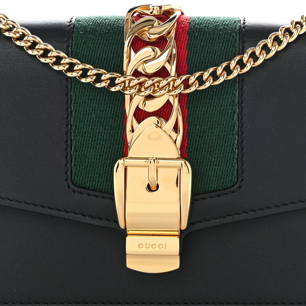 GUCCI SUPER MINI SYLVIE CHAIN SHOULDER BAG BLACK CALFSKIN LEATHER GOLD HARDWARE