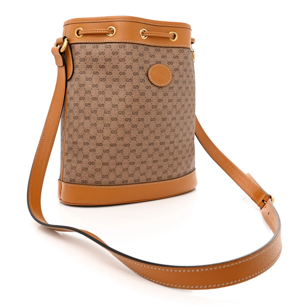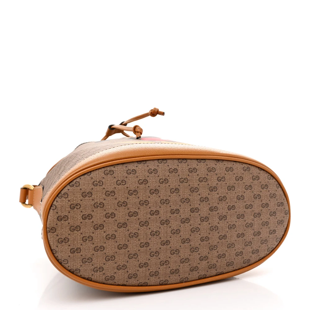 GUCCI X DISNEY MINI BUCKET BAG BEIGE / VINTAGE SUN OIL GG SUPREME MONOGRAM COATED CANVAS GOLD HARDWARE