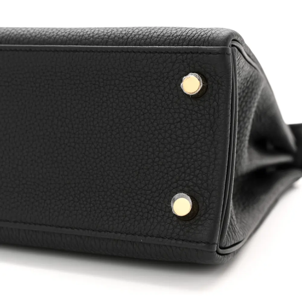HERMES KELLY RETOURNE 25 BLACK TOGO LEATHER GOLD HARDWARE