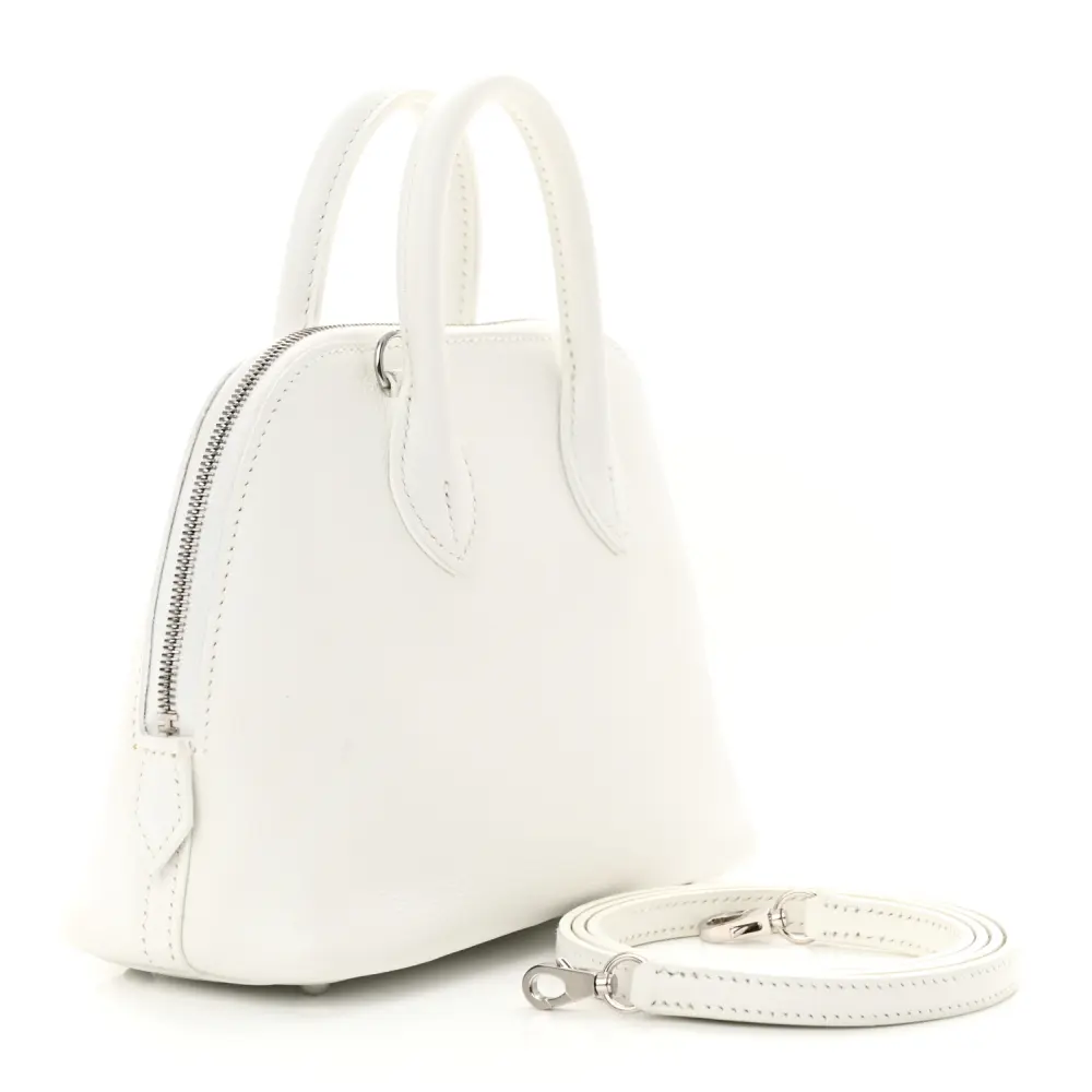 HERMES MINI 1923 BOLIDE WHITE EVERCOLOR LEATHER SILVER HARDWARE