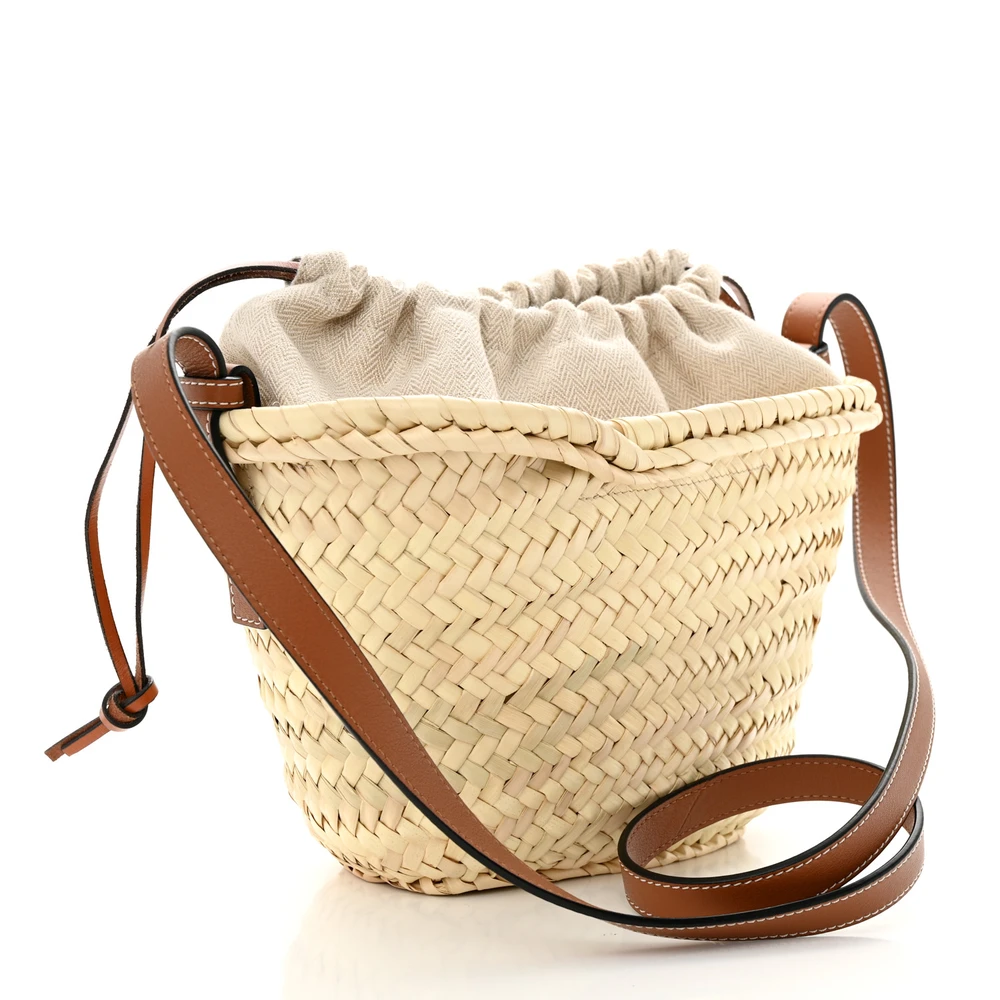 LOEWE LEAF PALM DRAWSTRING BUCKET BAG MINI NATURAL/TAN CALFSKIN LEATHER