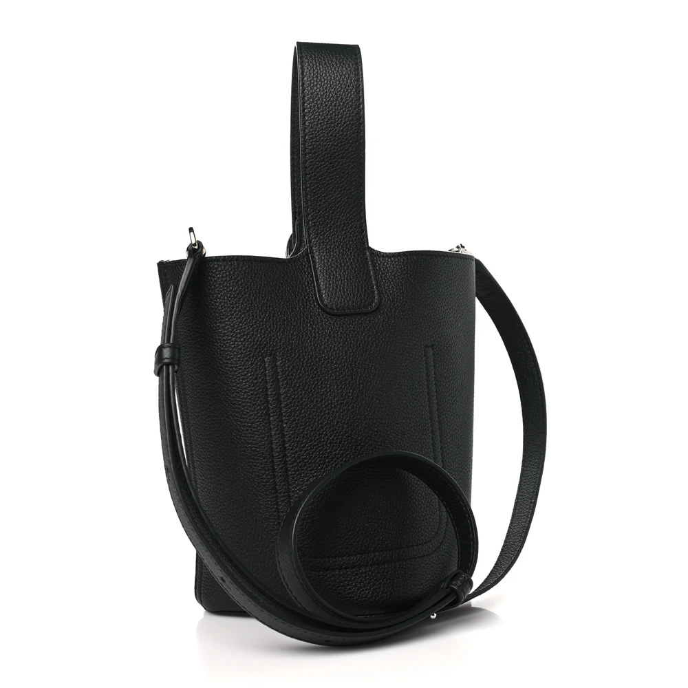 LOEWE PEBBLE BUCKET BAG MINI BLACK SOFT GRAINED CALFSKIN LEATHER PALLADIUM HARDWARE