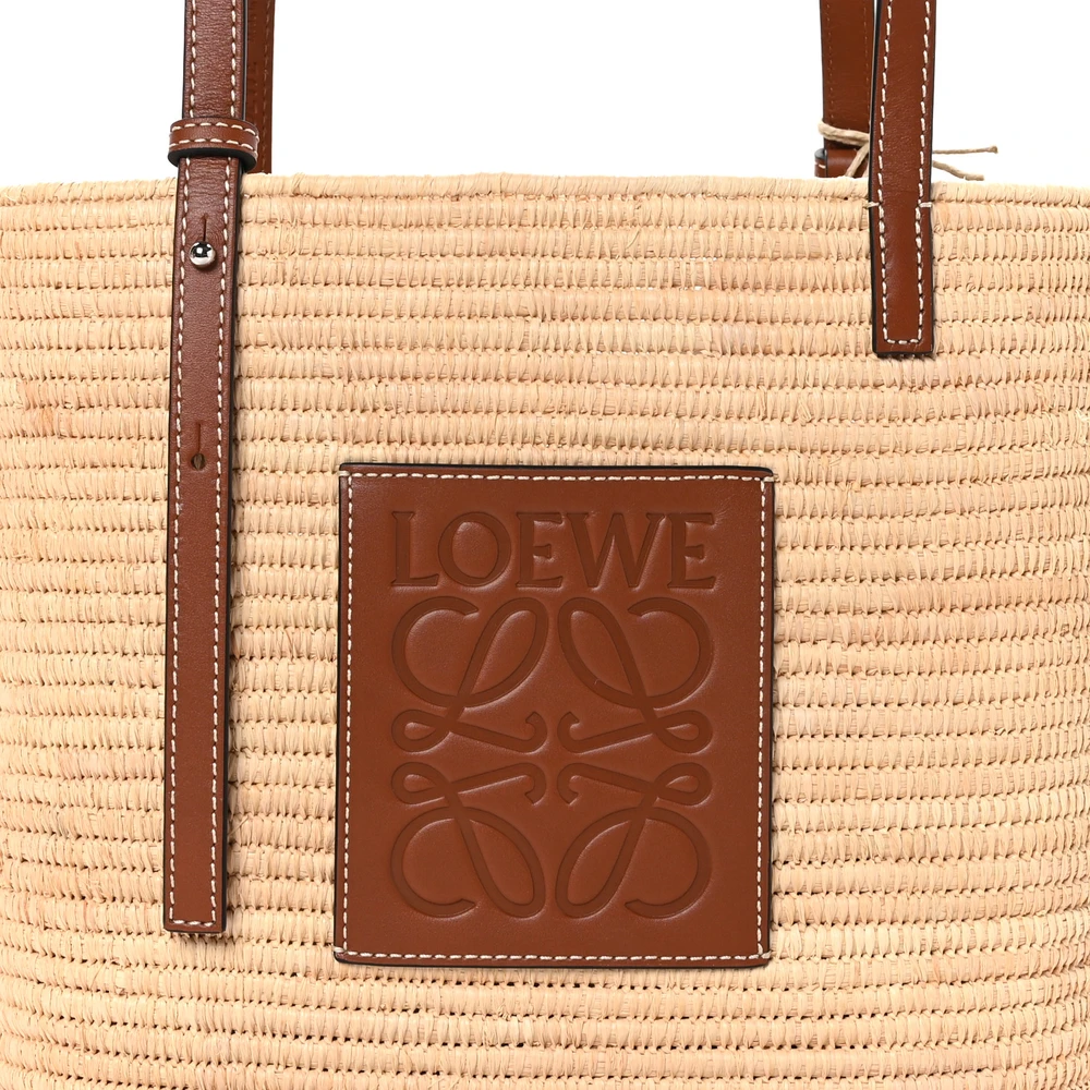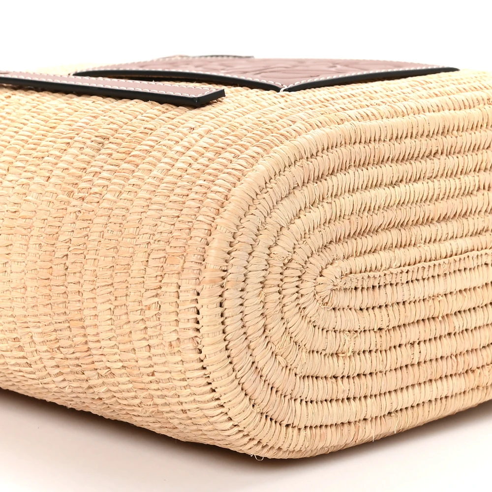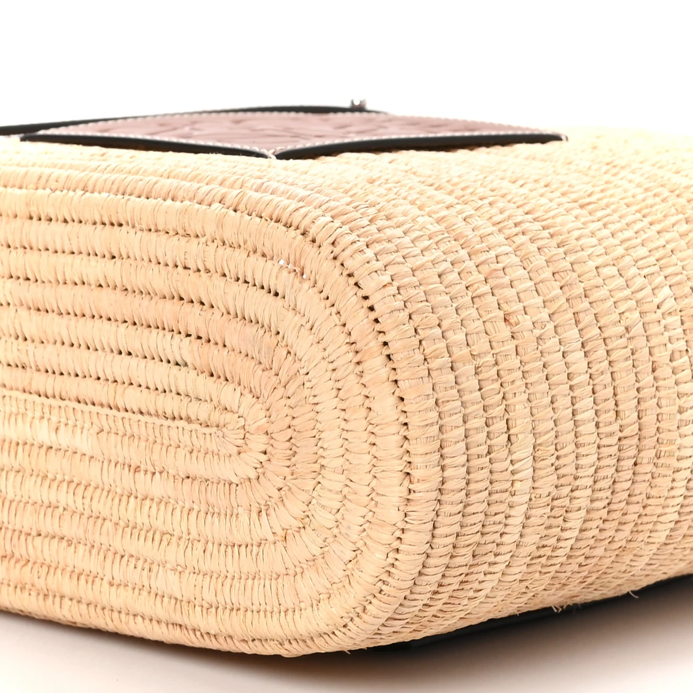 LOEWE SQUARE BASKET TOTE BAG SMALL NATURAL/PECAN RAFFIA & CALFSKIN LEATHER