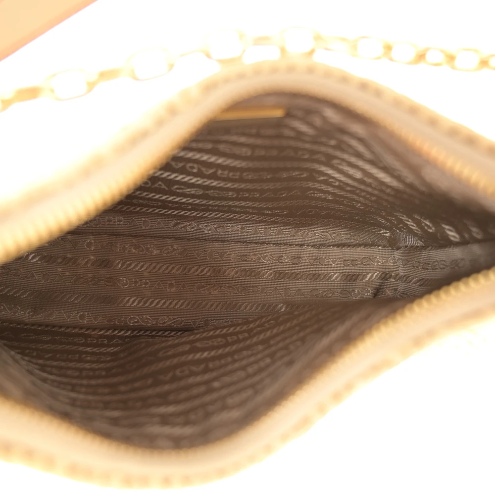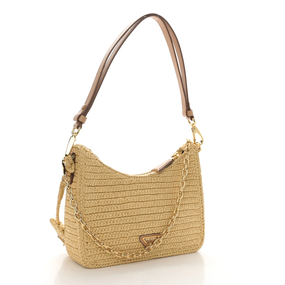 PRADA MINI EFFECT CROCHET RE-EDITION 2000 SHOULDER BAG NATURALE YARN RAFFIA GOLD HARDWARE