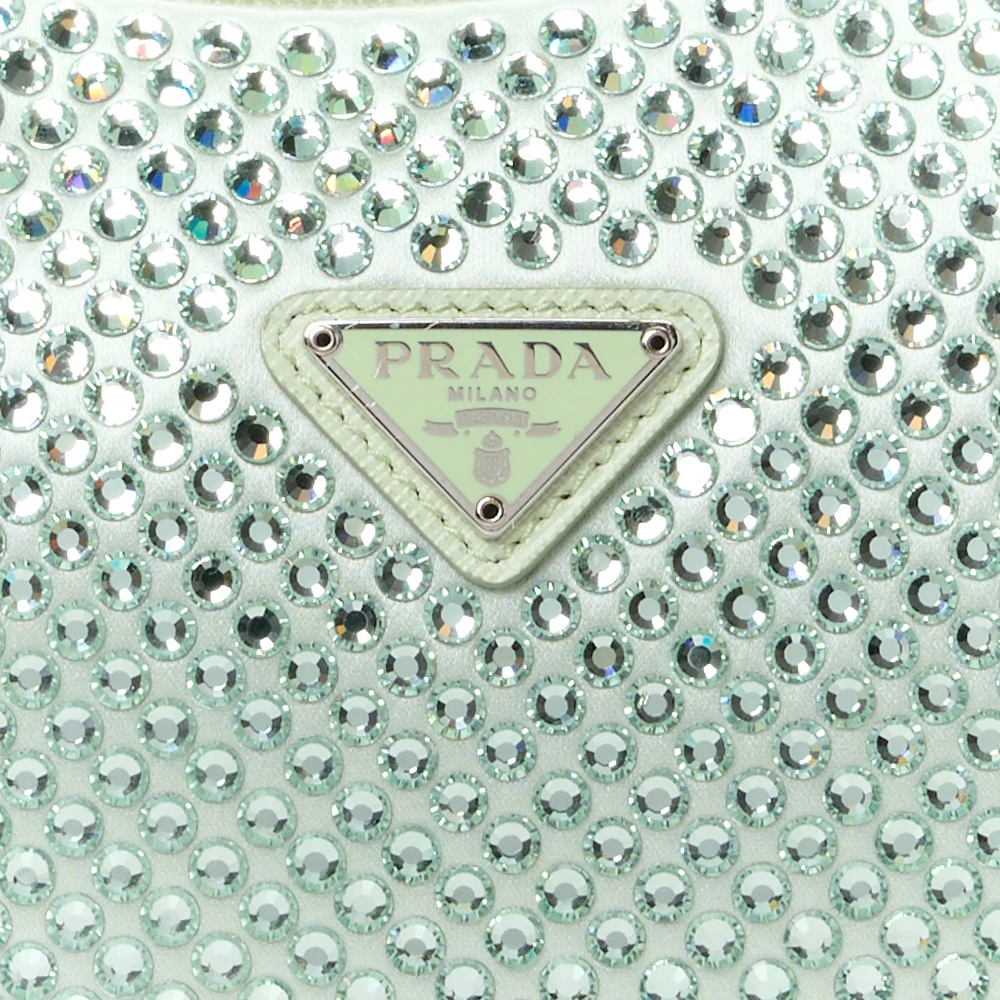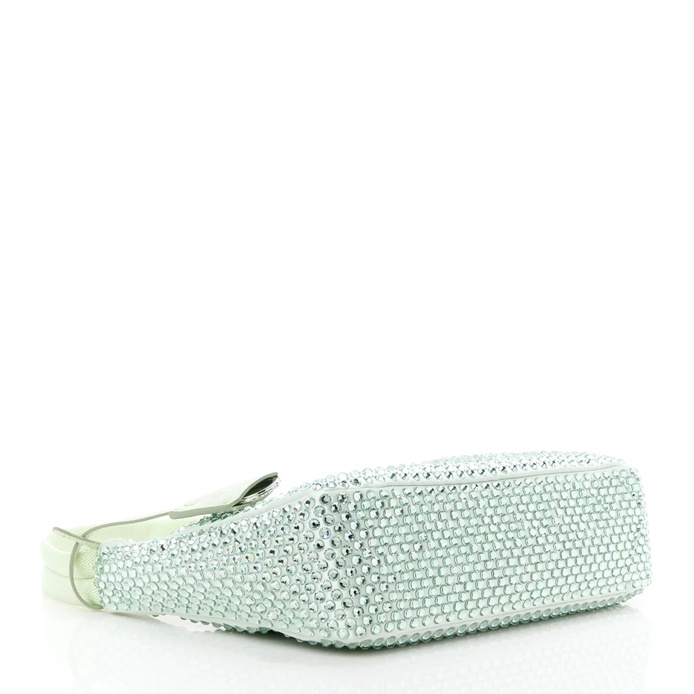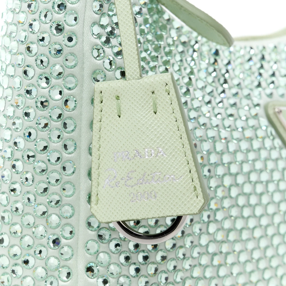 PRADA MINI RE-EDITION 2000 BAG ACQUA SATIN & CRYSTAL