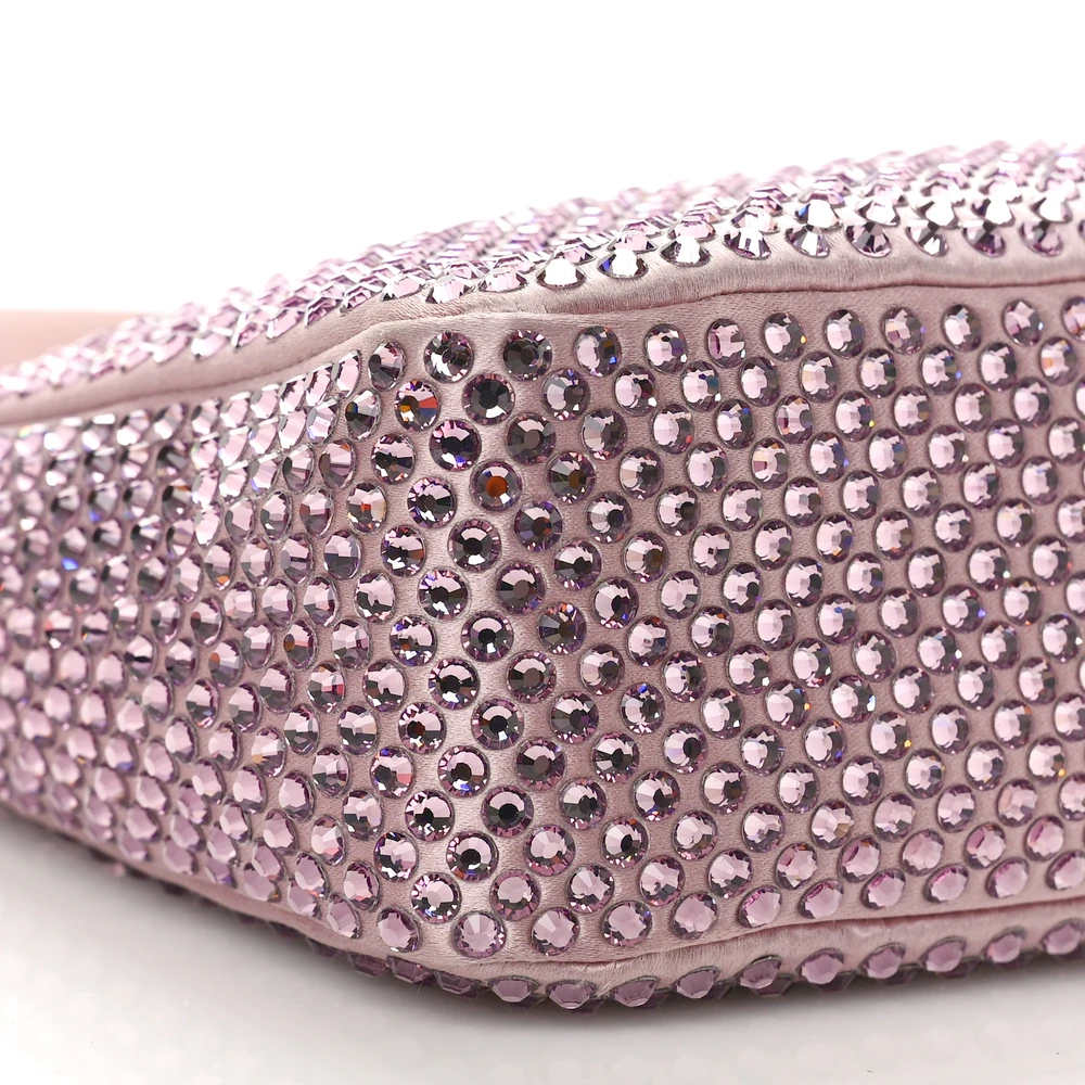 PRADA MINI RE-EDITION 2000 BAG ALABASTRO SATIN & CRYSTAL SILVER HARDWARE