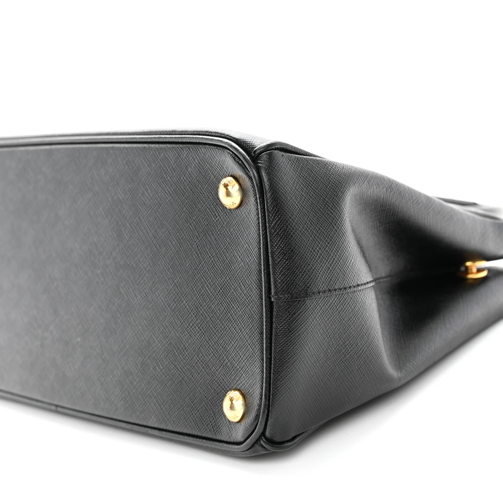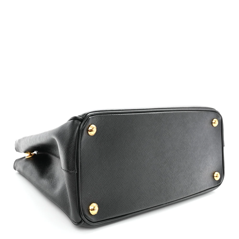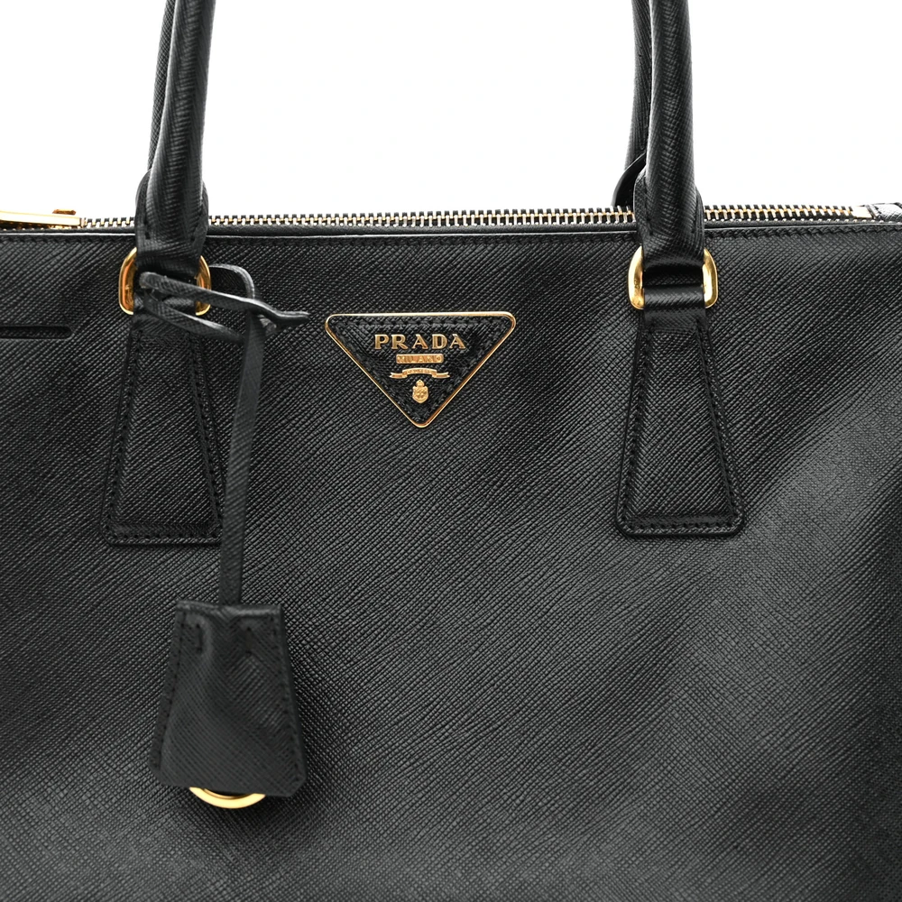 PRADA SMALL GALLERIA DOUBLE ZIP TOTE BLACK SAFFIANO LEATHER BRASS HARDWARE