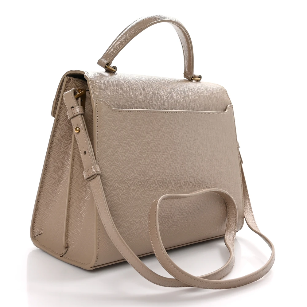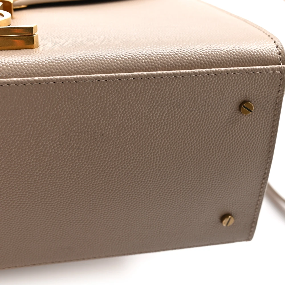 SAINT LAURENT MEDIUM CASSANDRA TOP HANDLE DARK BEIGE CLASSIC MONOGRAM GRAIN DE POUDRE LEATHER AGED GOLD HARDWARE