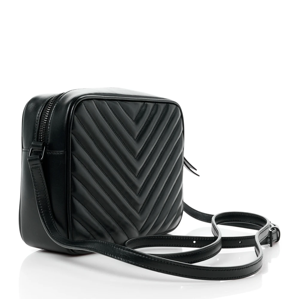 SAINT LAURENT MEDIUM LOU CAMERA BAG BLACK MONOGRAM CALFSKIN MATELASSE LEATHER BLACK HARDWARE