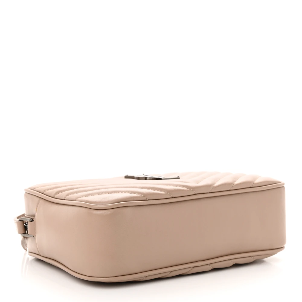 SAINT LAURENT MEDIUM LOU CAMERA BAG DARK BEIGE MONOGRAM CALFSKIN MATELASSE LEATHER RUTHENIUM HARDWARE