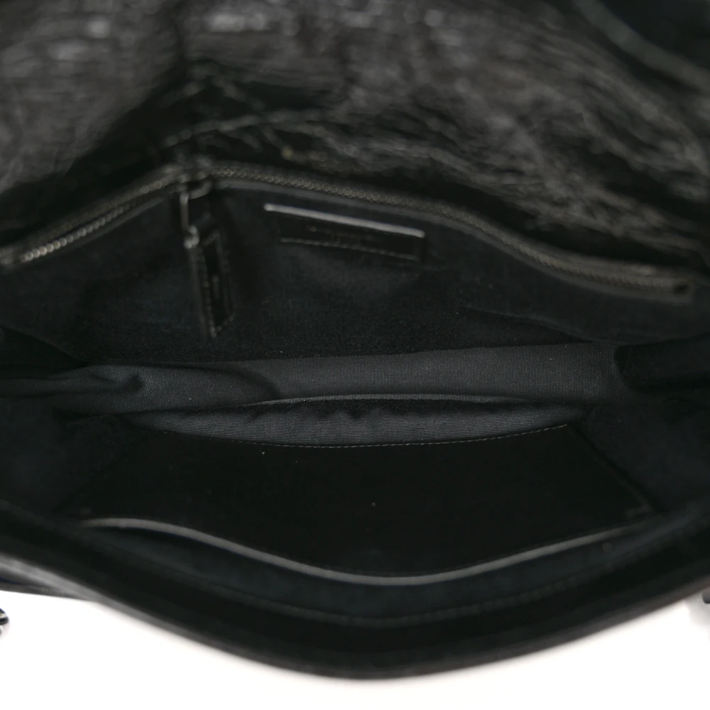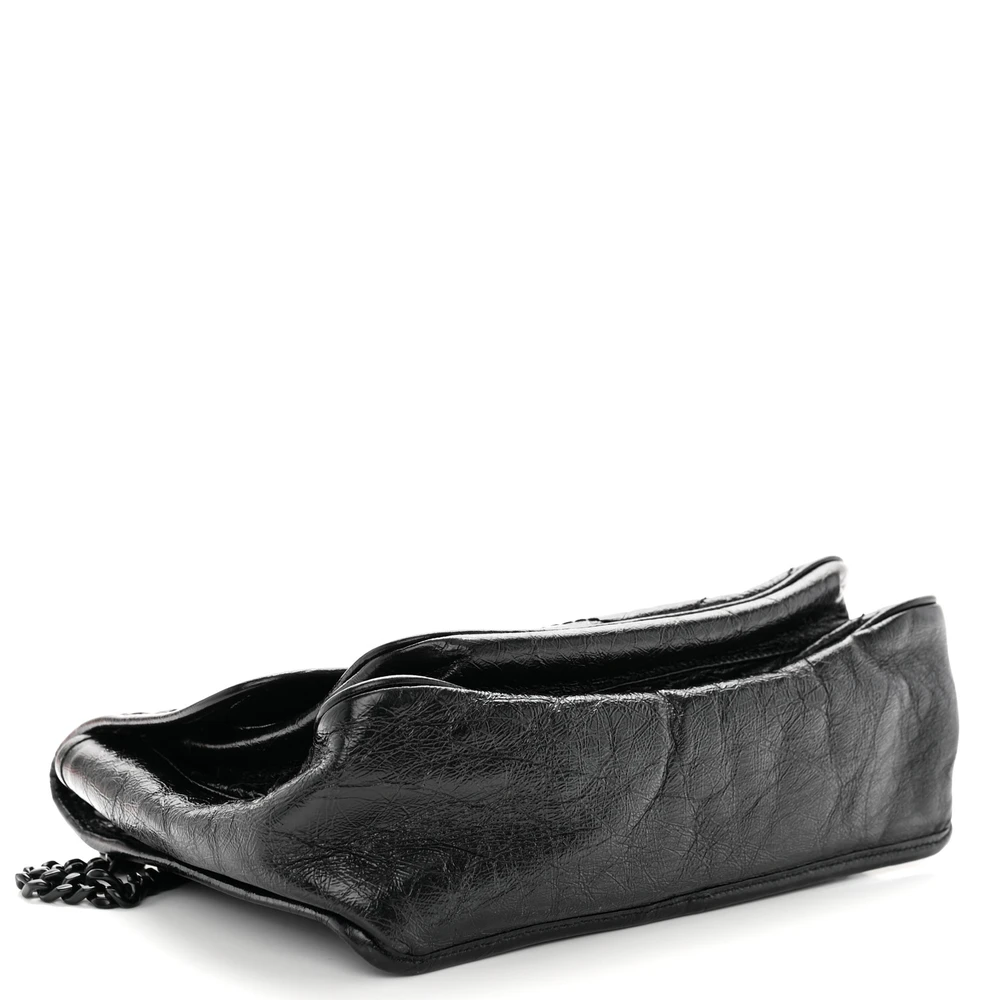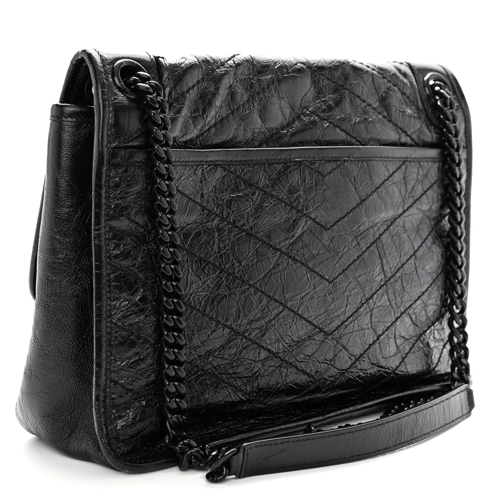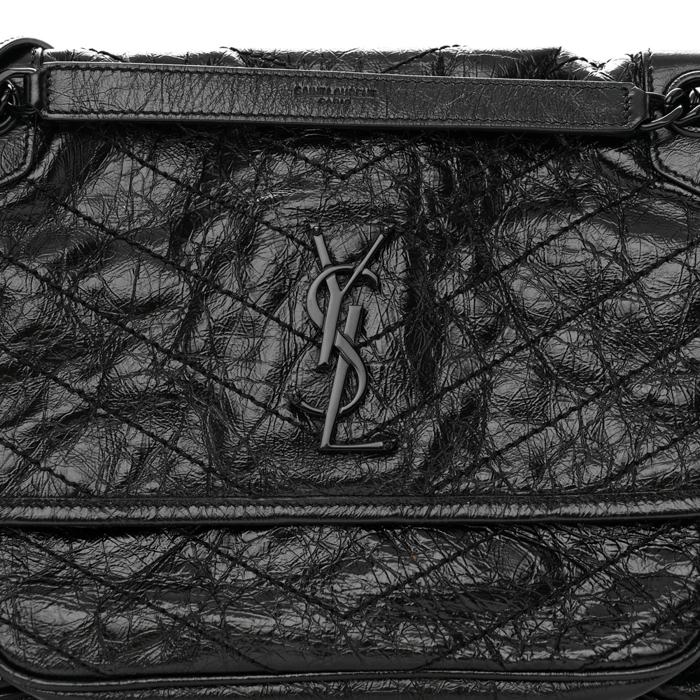 SAINT LAURENT MEDIUM NIKI CHAIN SATCHEL BLACK CRINKLED MONOGRAM CALFSKIN MATELASSE LEATHER BLACK HARDWARE