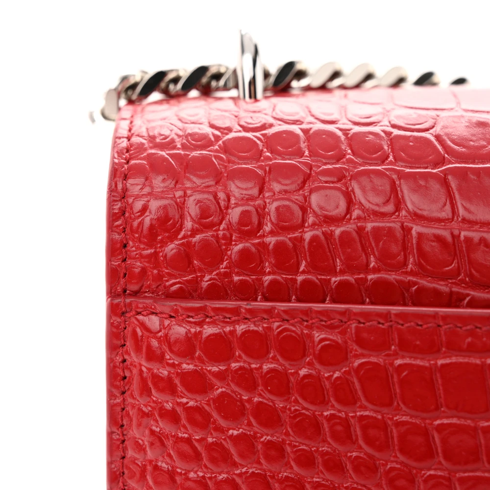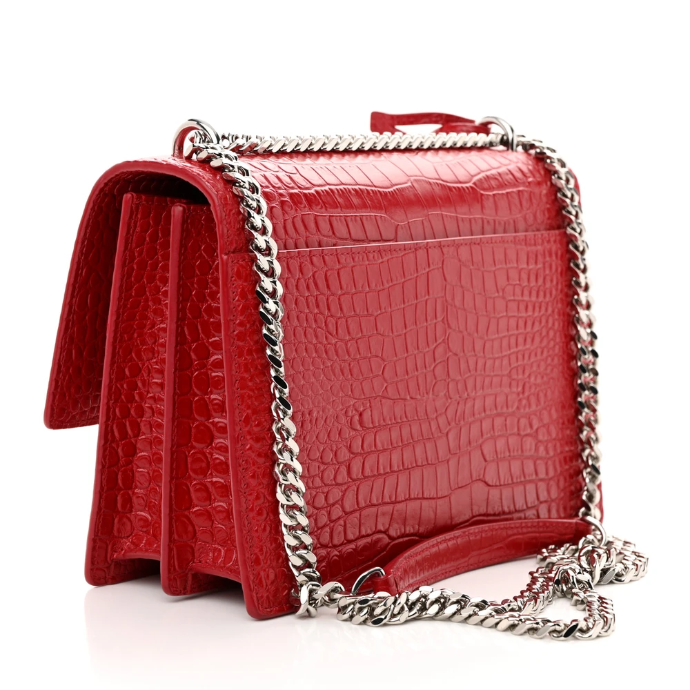 SAINT LAURENT MEDIUM SUNSET BAG ROUGE EROS EMBOSSED MONOGRAM CALFSKIN & CROCODILE LEATHER SILVER HARDWARE