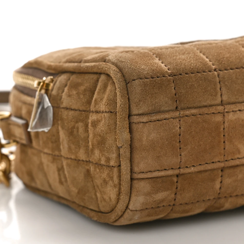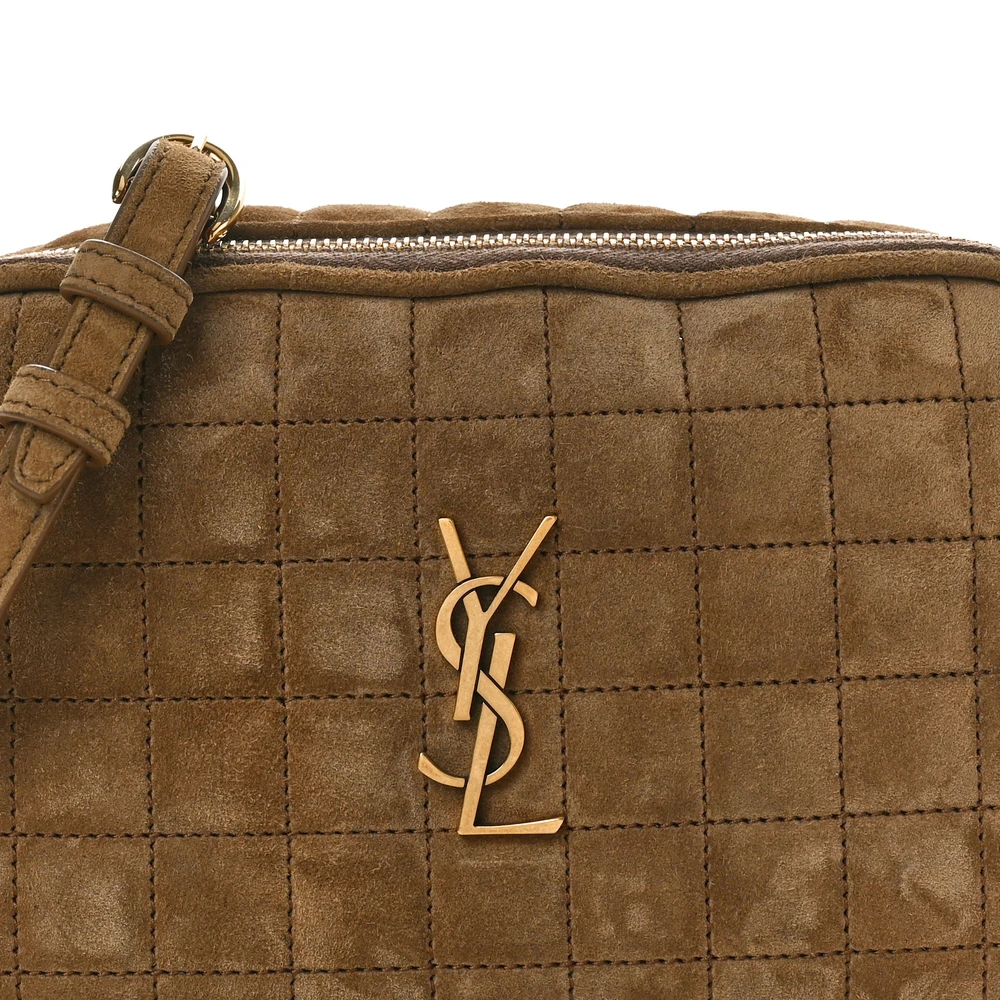 SAINT LAURENT MINI CAMERA BAG GOLDEN LEAF QUILTED MONOGRAM SUEDE & CALFSKIN LEATHER GOLD HARDWARE