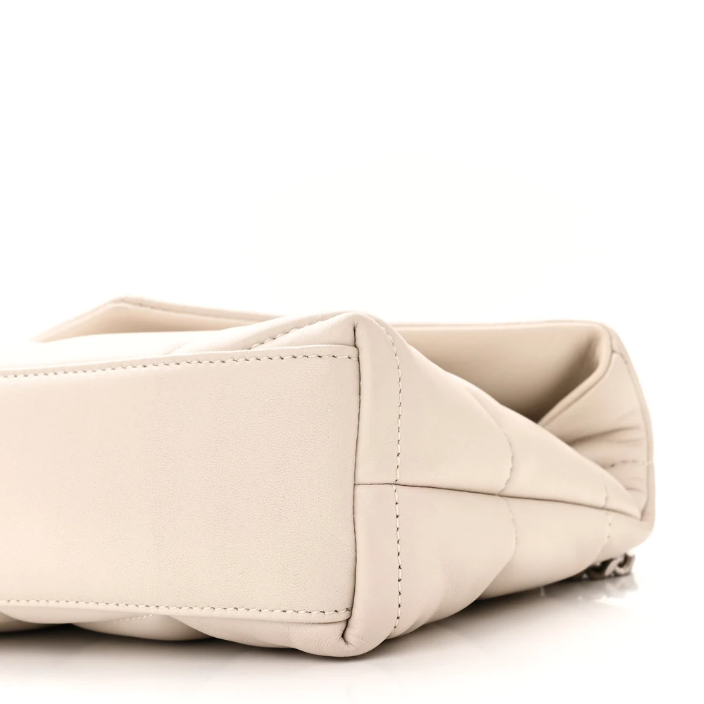 SAINT LAURENT MINI LOULOU CHAIN SATCHEL CREMA SOFT QUILTED PUFFER MONOGRAM LAMBSKIN LEATHER AGED GOLD HARDWARE