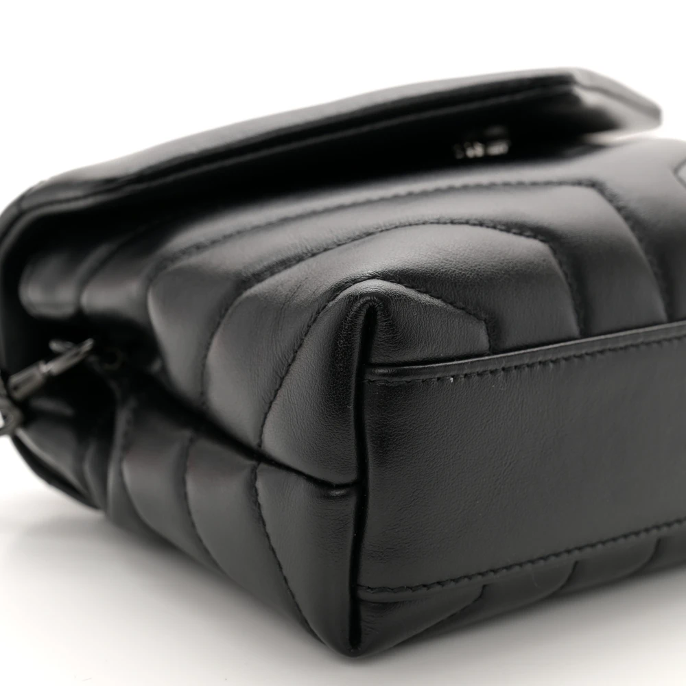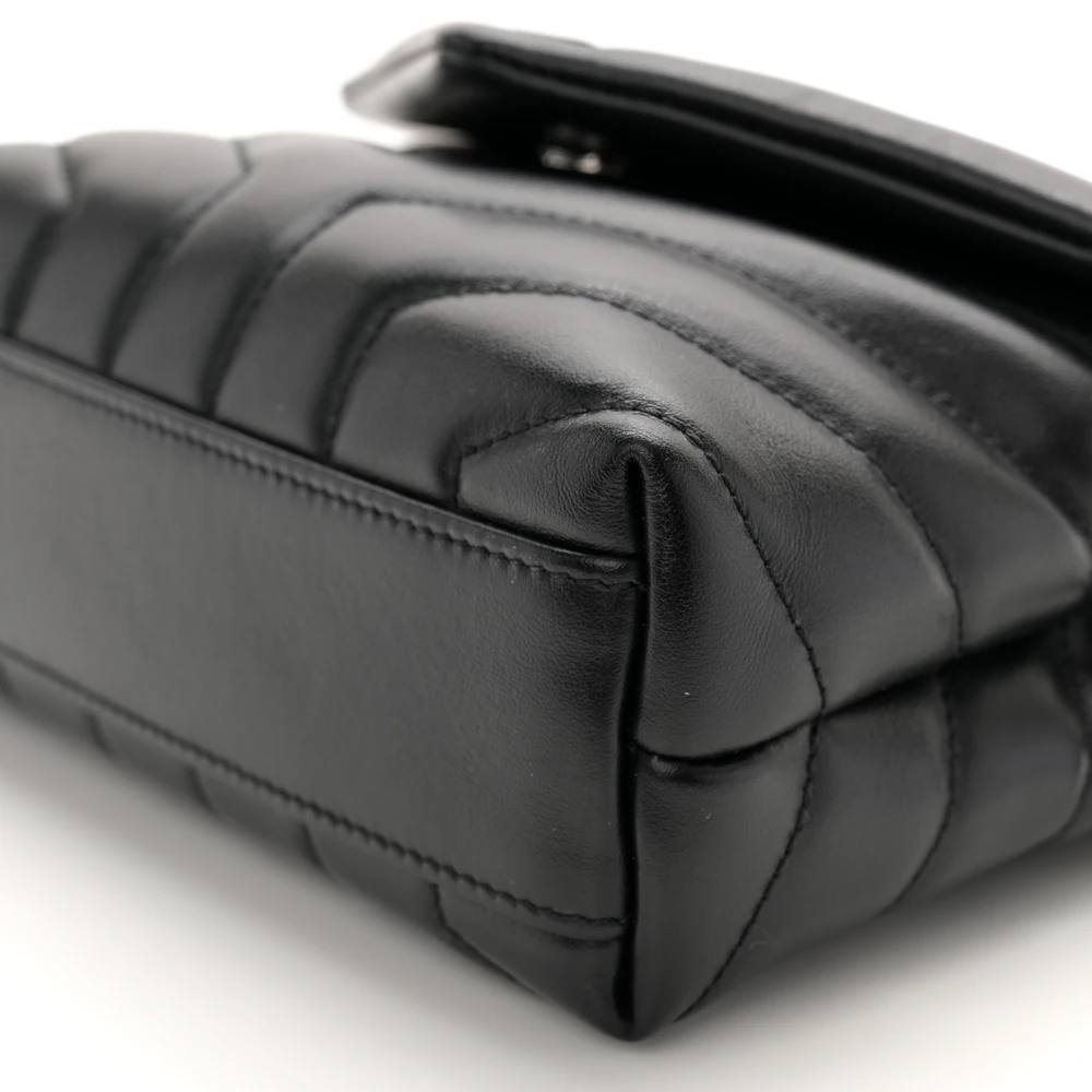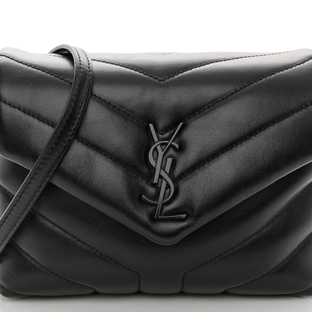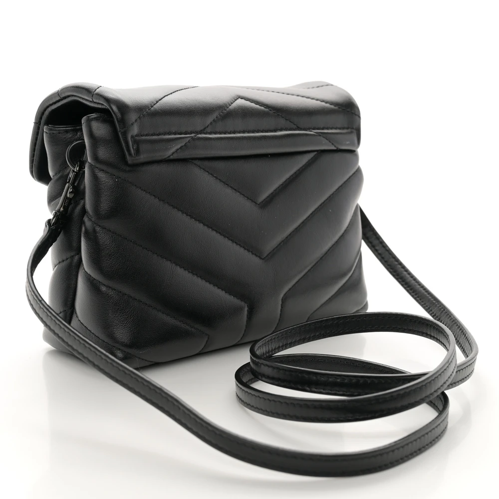 SAINT LAURENT MINI LOULOU CROSSBODY BAG BLACK Y-QUILTED MONOCHROME MONOGRAM CALFSKIN LEATHER BLACK HARDWARE