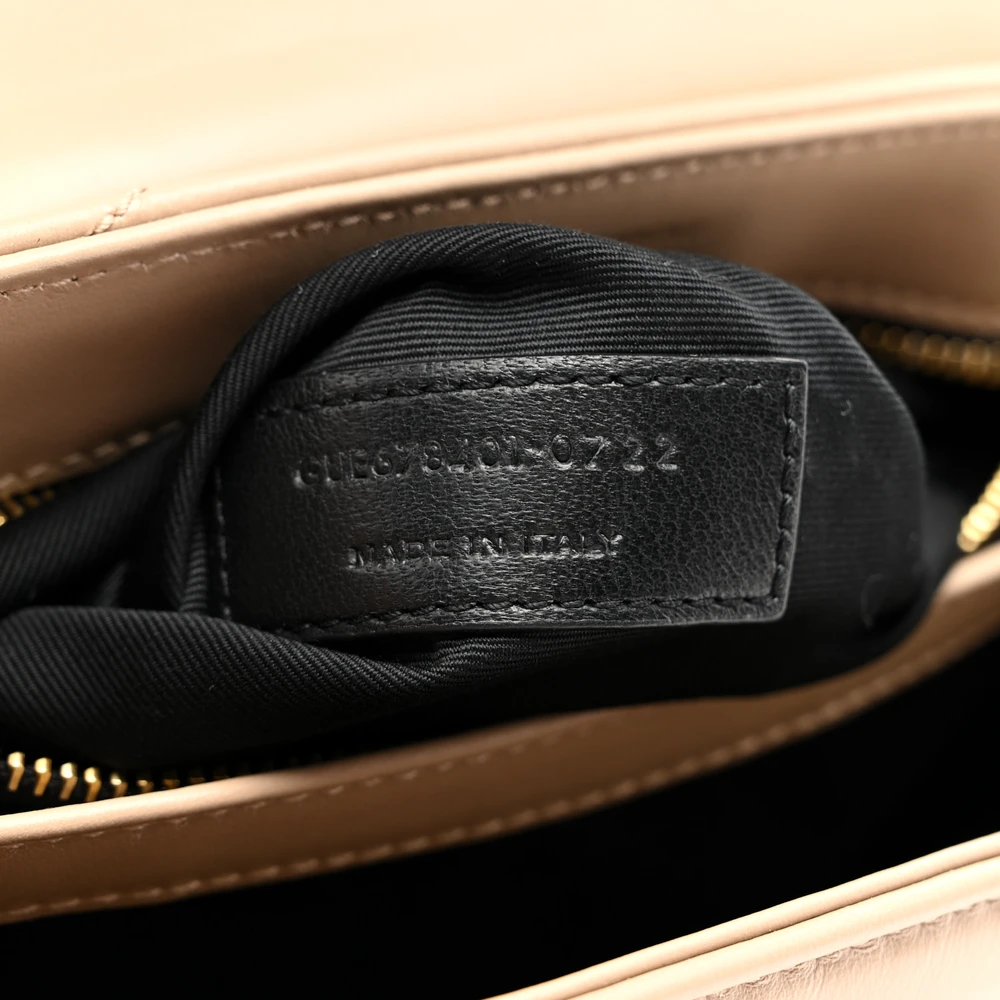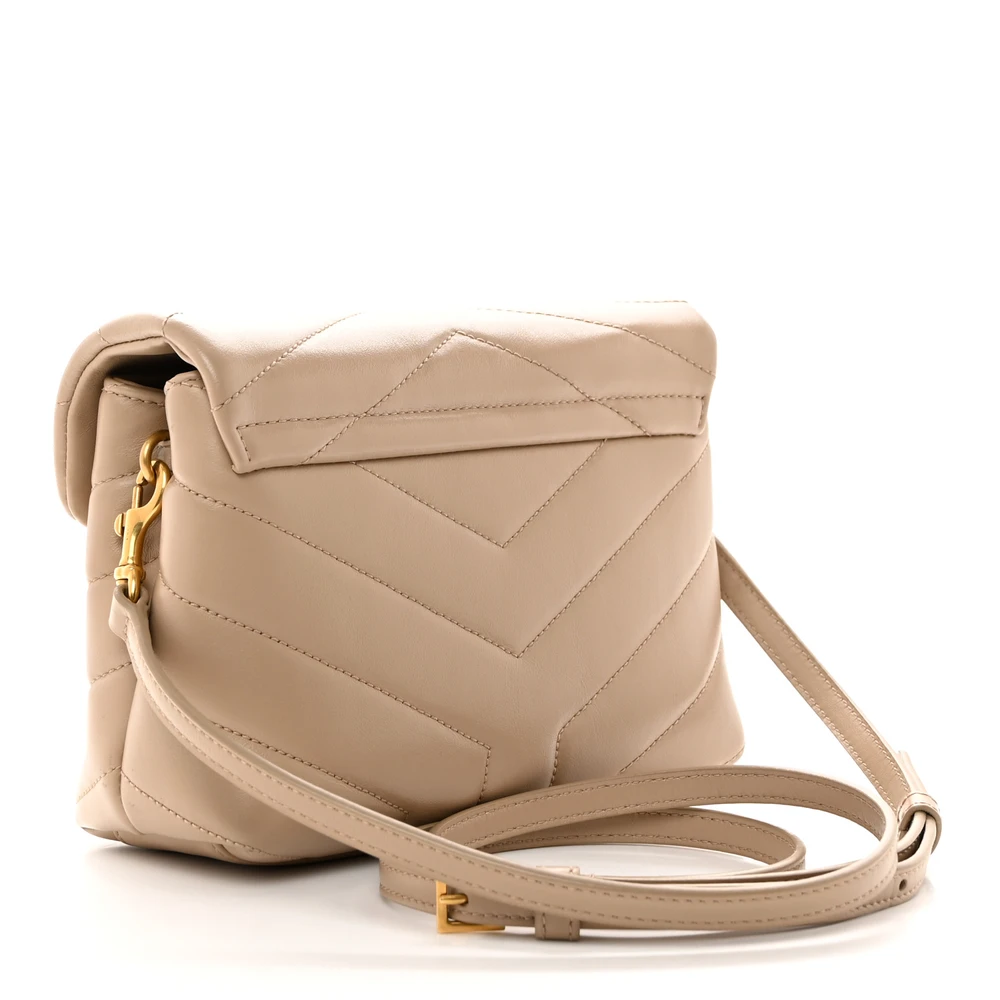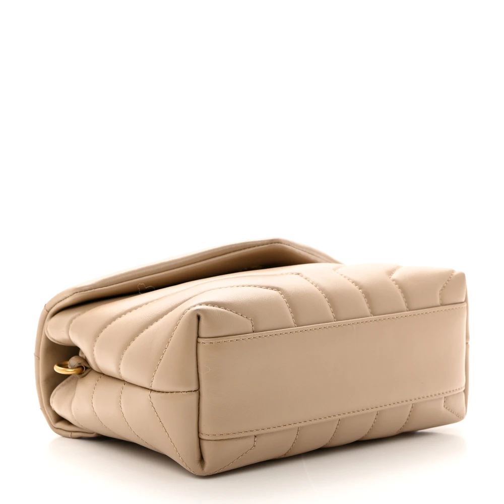 SAINT LAURENT MINI LOULOU CROSSBODY BAG DARK BEIGE Y-QUILTED MONOGRAM CALFSKIN LEATHER AGED GOLD HARDWARE