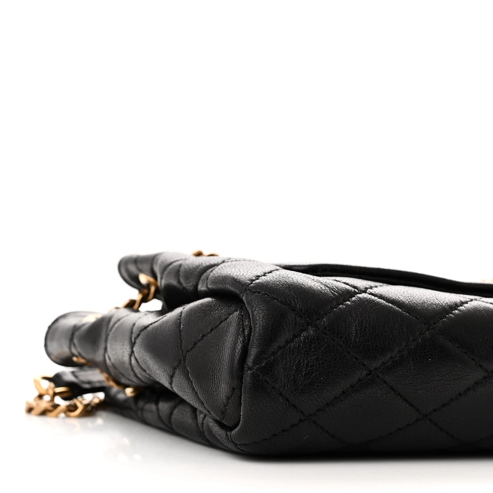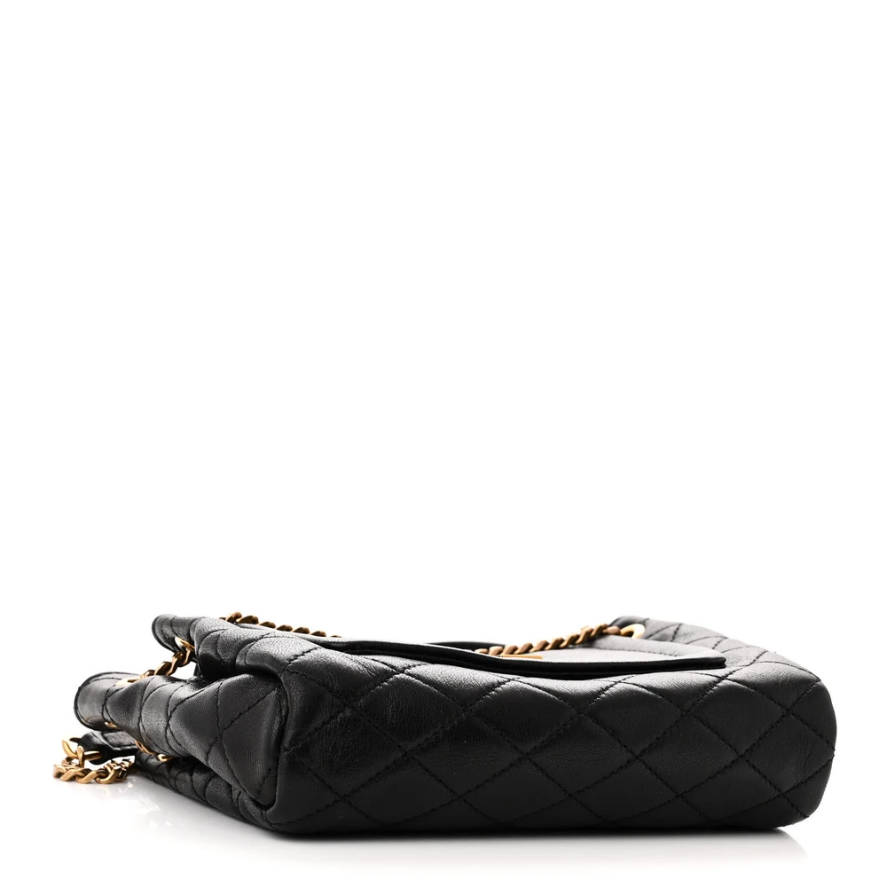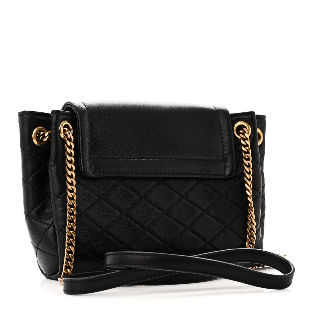 SAINT LAURENT MINI NOLITA BLACK QUILTED MONOGRAM LAMBSKIN LEATHER AGED GOLD HARDWARE
