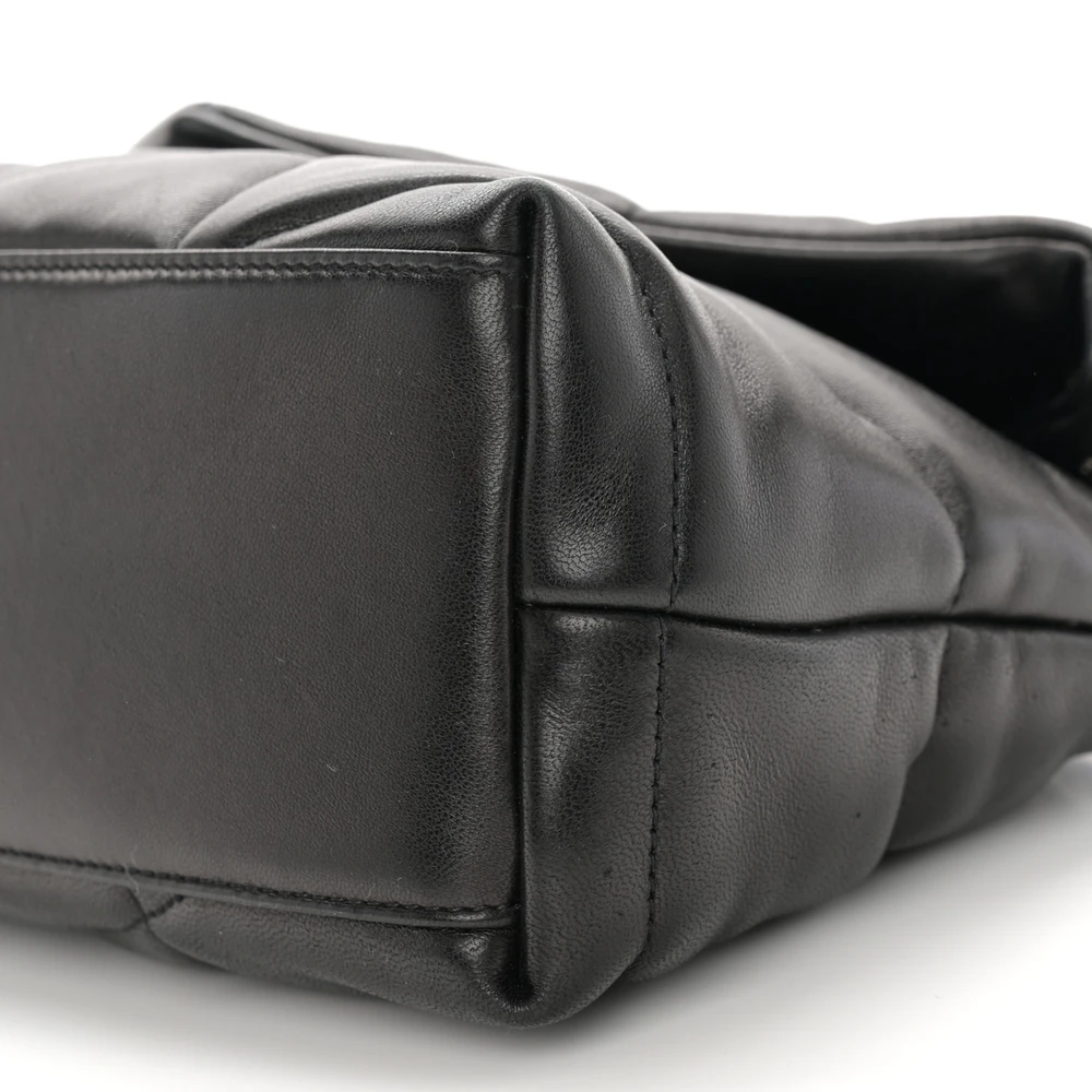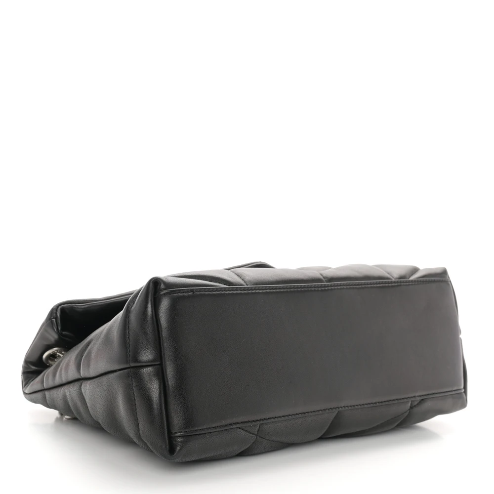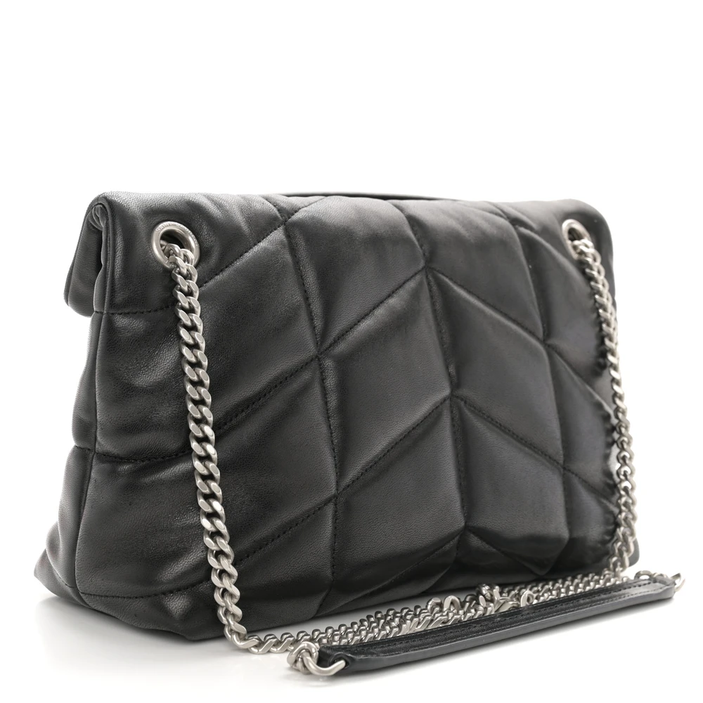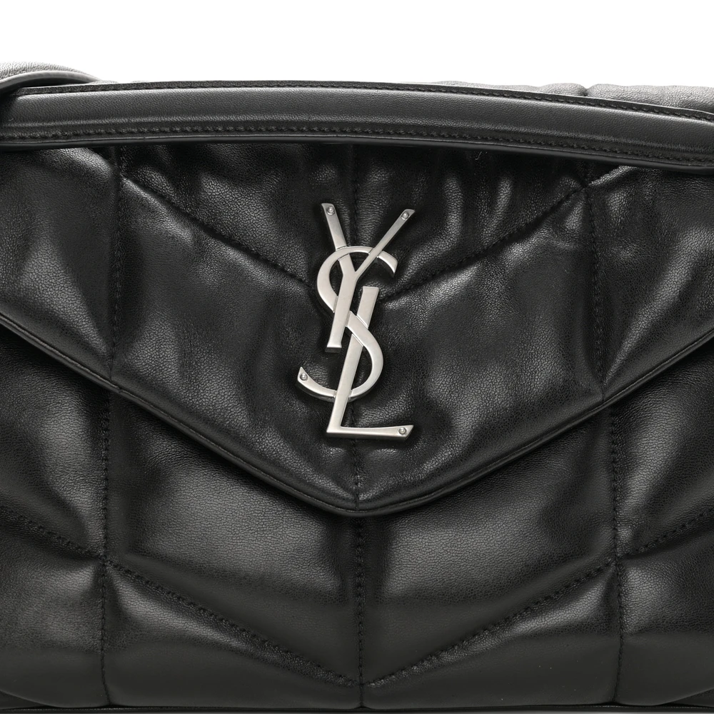 SAINT LAURENT SMALL LOULOU CHAIN SATCHEL BLACK QUILTED PUFFER MONOGRAM LAMBSKIN LEATHER SILVER HARDWARE
