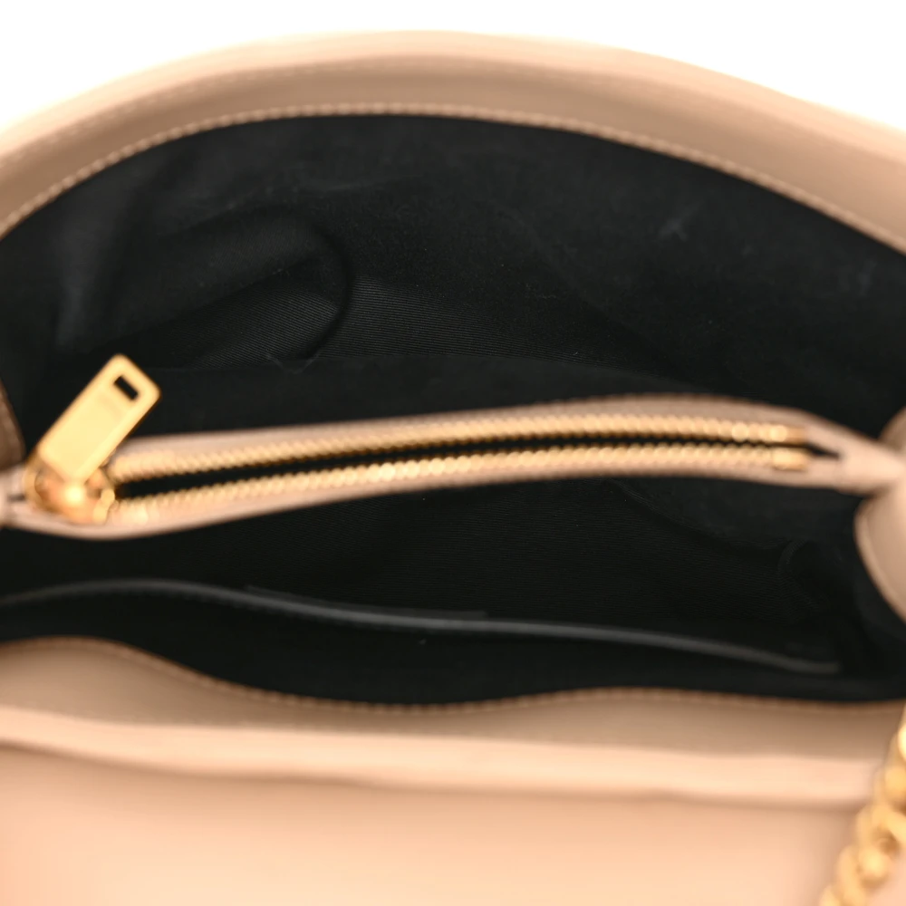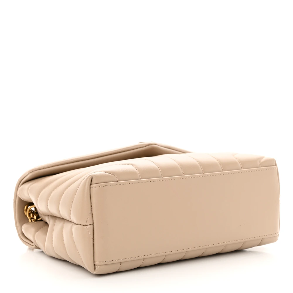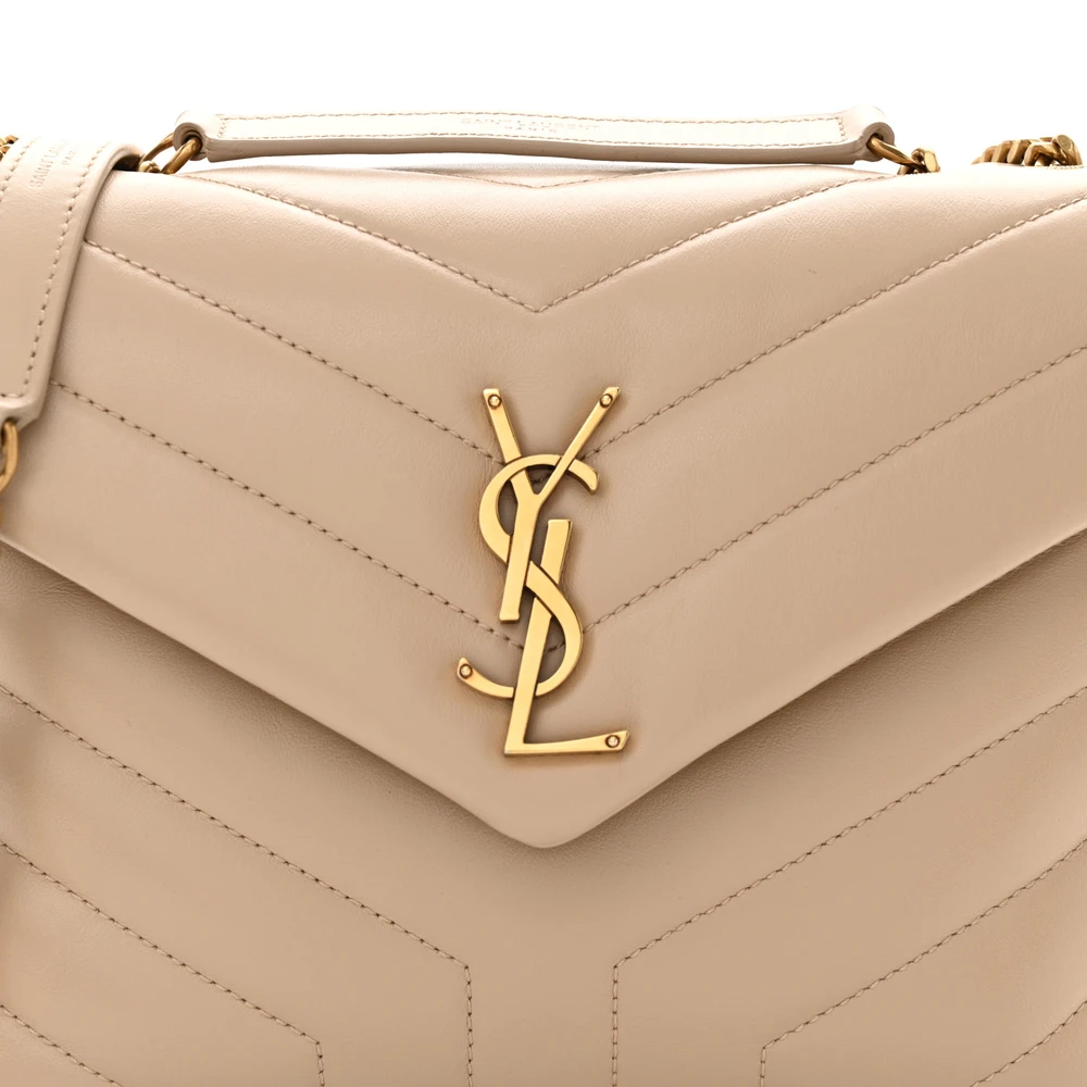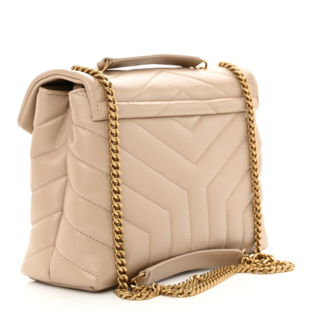 SAINT LAURENT SMALL LOULOU CHAIN SATCHEL DARK BEIGE Y-QUILTED MONOGRAM CALFSKIN LEATHER GOLD HARDWARE
