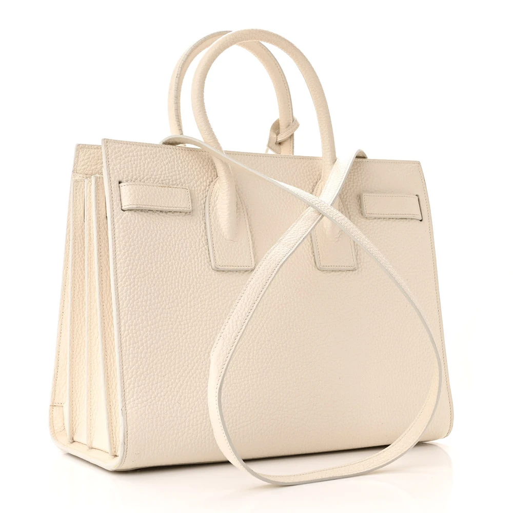SAINT LAURENT SMALL SAC DE JOUR DOVE WHITE GRAINED CALFSKIN LEATHER