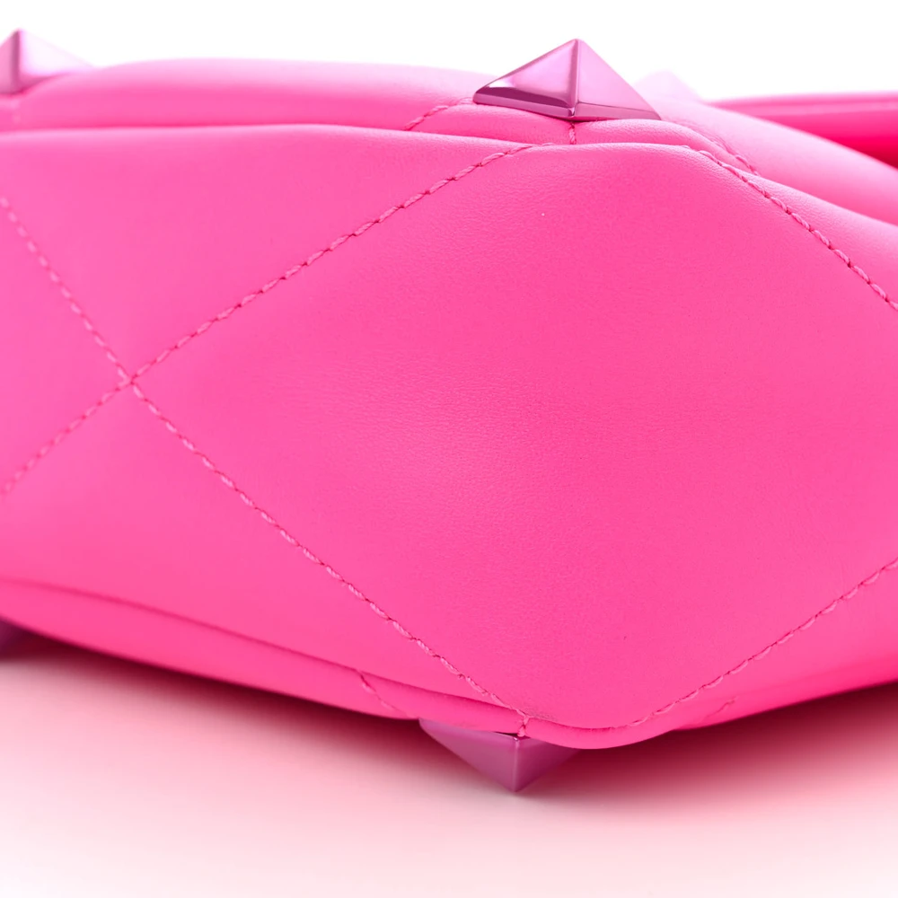 VALENTINO GARAVANI LARGE ROMAN STUD SHOULDER BAG PINK PP LACQUER MONOCHROME NAPPA LEATHER INCOGNITO HARDWARE