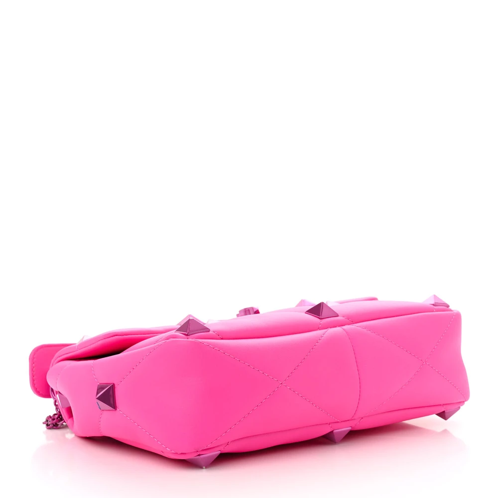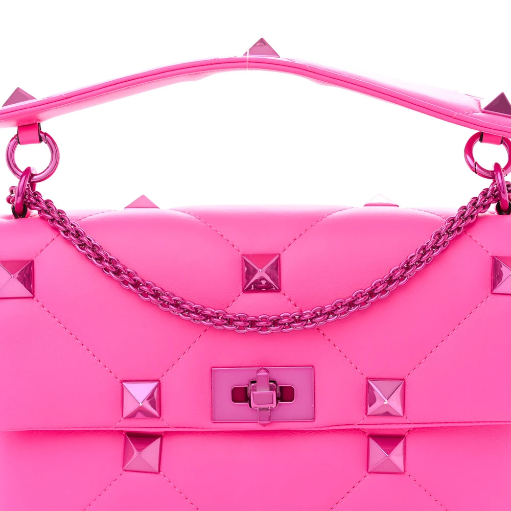 VALENTINO GARAVANI LARGE ROMAN STUD SHOULDER BAG PINK PP LACQUER MONOCHROME NAPPA LEATHER INCOGNITO HARDWARE