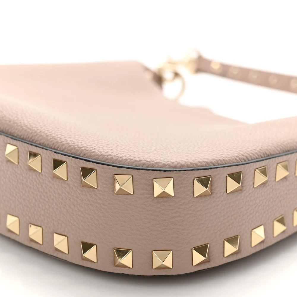 VALENTINO GARAVANI MINI ROCKSTUD HOBO POUDRE GRAINY CALFSKIN LEATHER GOLD HARDWARE