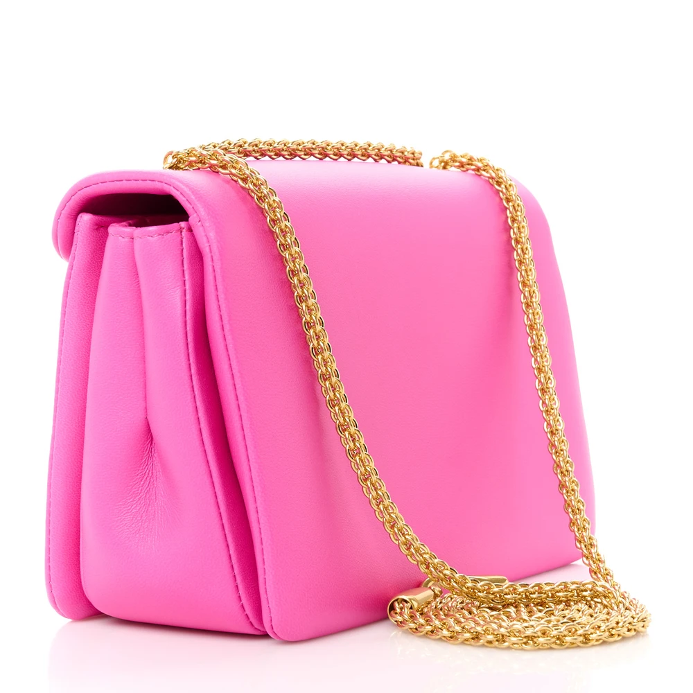 VALENTINO GARAVANI SMALL ONE STUD CHAIN CLUTCH PINK PP NAPPA LEATHER GOLD HARDWARE