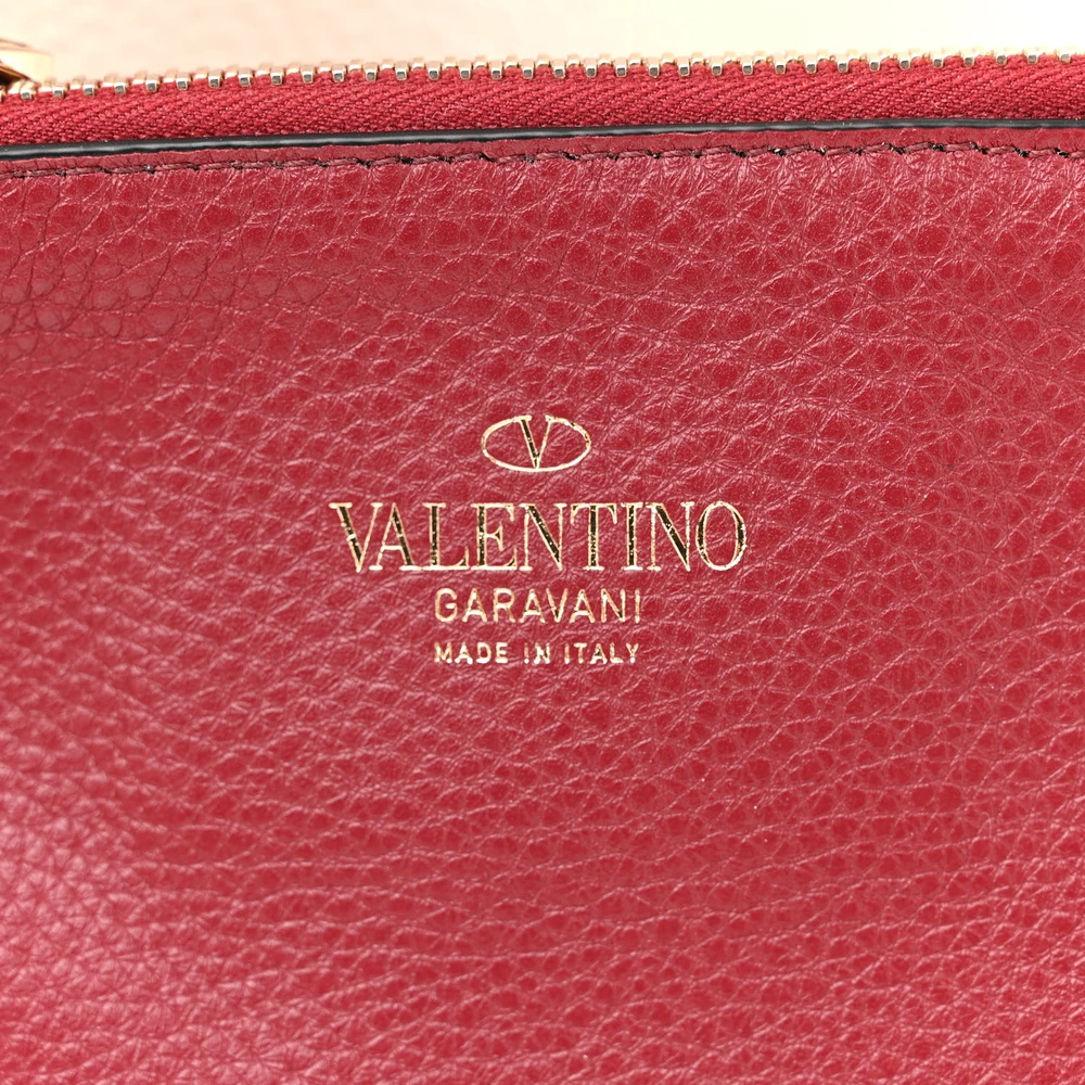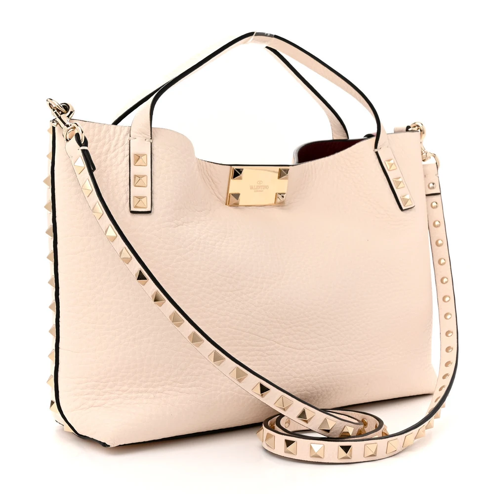 VALENTINO GARAVANI SMALL ROCKSTUD FLIP LOCK TOTE BAG LIGHT IVORY/RUBINO GRAINED CALFSKIN LEATHER GOLD HARDWARE