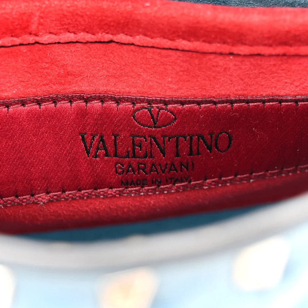 VALENTINO GARAVANI SMALL ROCKSTUD SPIKE SHOULDER BAG AQUA NAPPA LEATHER LIGHT GOLD HARDWARE